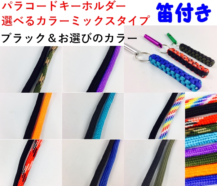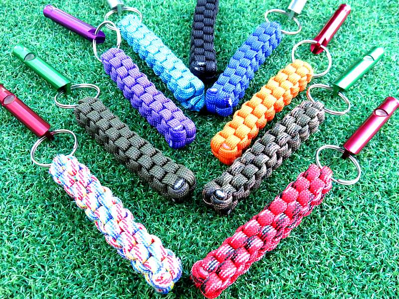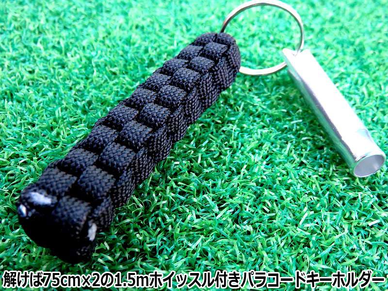 パラコードキーホルダー【黒】アウトドアロープ1.5m利用のキーホルダー アルマイトカラーホイッスル付 非常用ロープ アウトドア派に便利