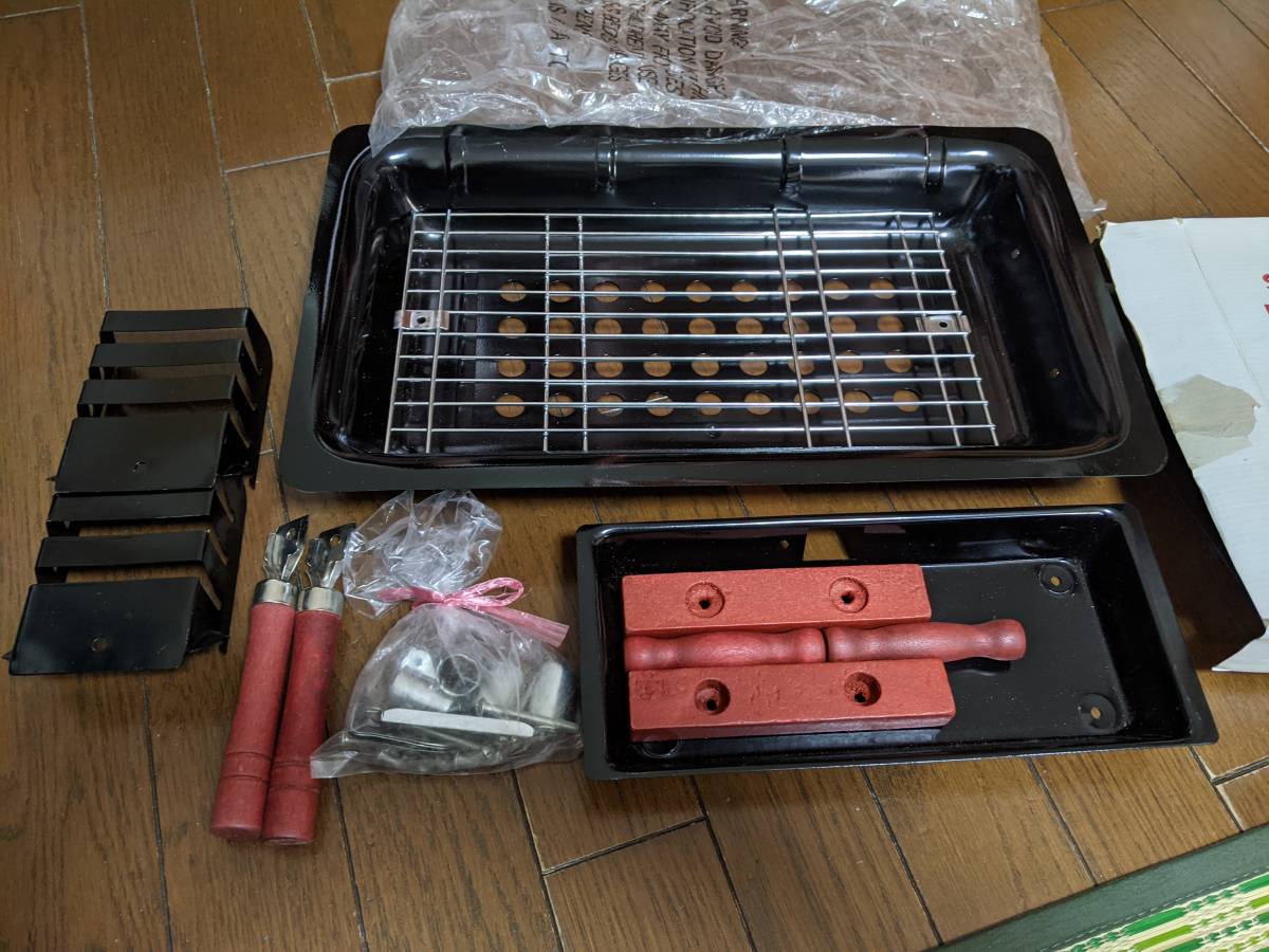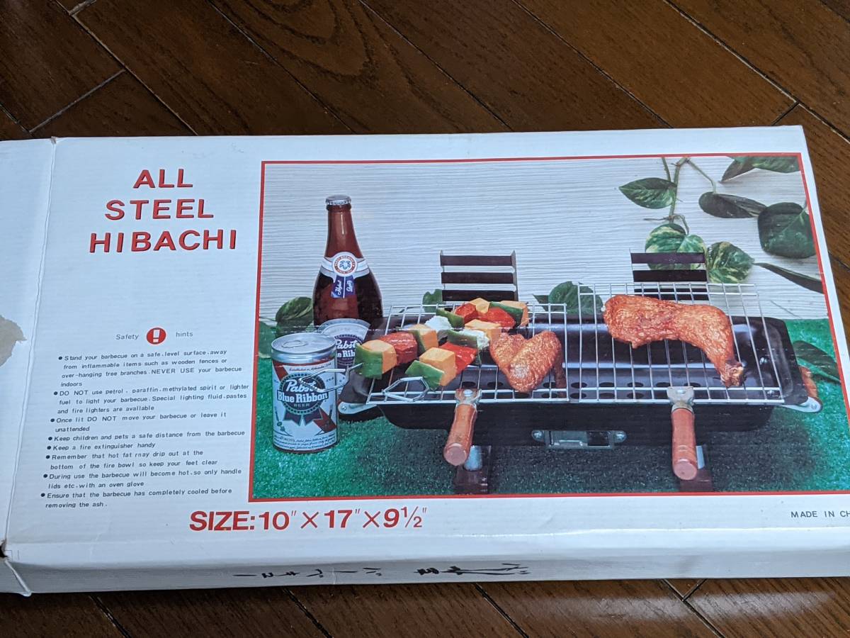 ☆バーベキューセット ひとりソロキャンプに ALL STEEL HIBACHI 火鉢 焼き肉 焼き鳥 調理コンロ 鉄板 未使用品 美品 送料無料