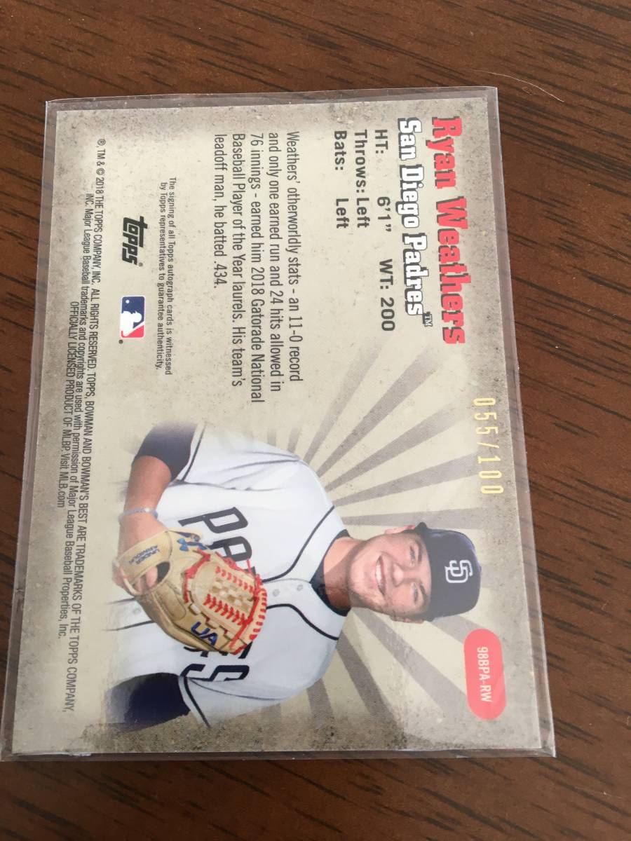 【現Marlins/Ryan Weathers】2018 Bowman's Best 1998 Performers Auto 55/100