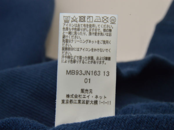 | (本体)コットン100% (リブ部分)コットン98% ポリウレタン2% | |||||||||||||