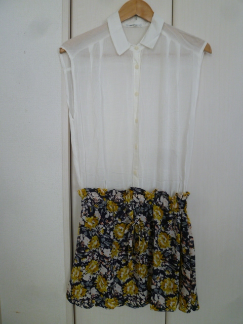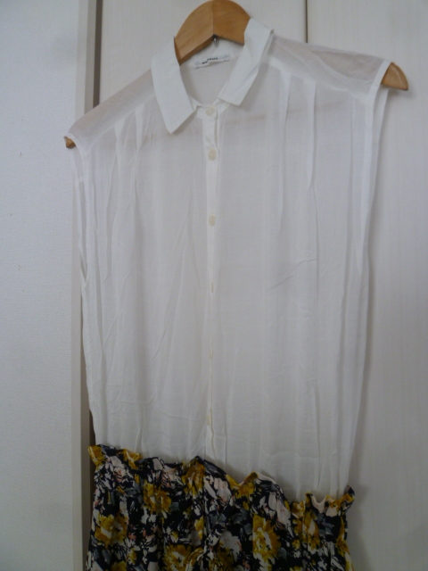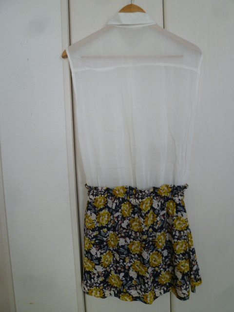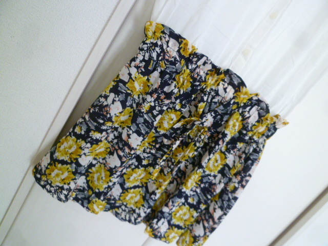 RAY CASSIN/レイカズン△白ガーゼ風ブラウスシャツ×紺花柄スカート異素材ドッキングツイン風チュニックワンピースM/ホワイト半袖△216