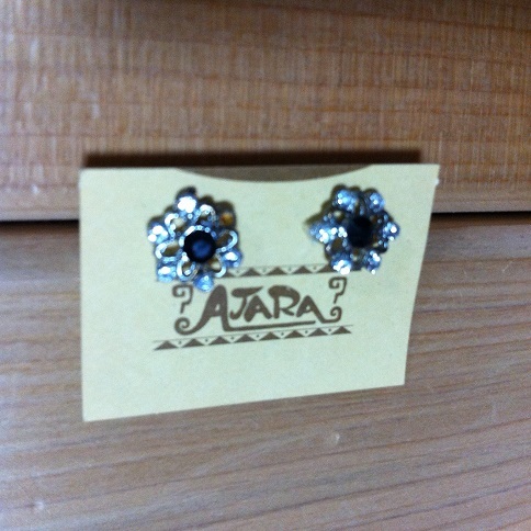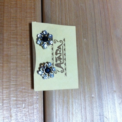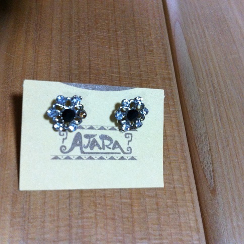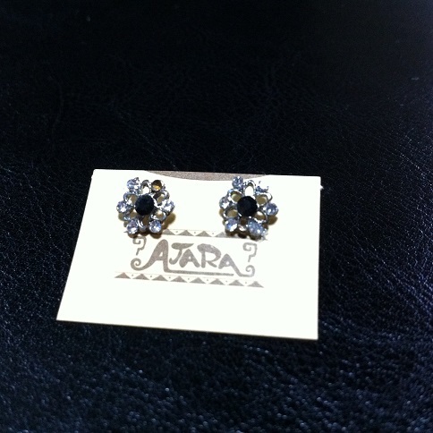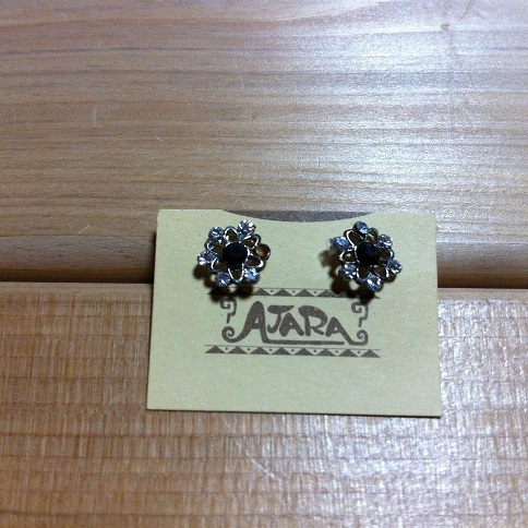 キラキラ☆お花モチーフミニピアス黒 キャッチ式プチピアス アジアンエスニック民族雑貨 プチプラアクセ