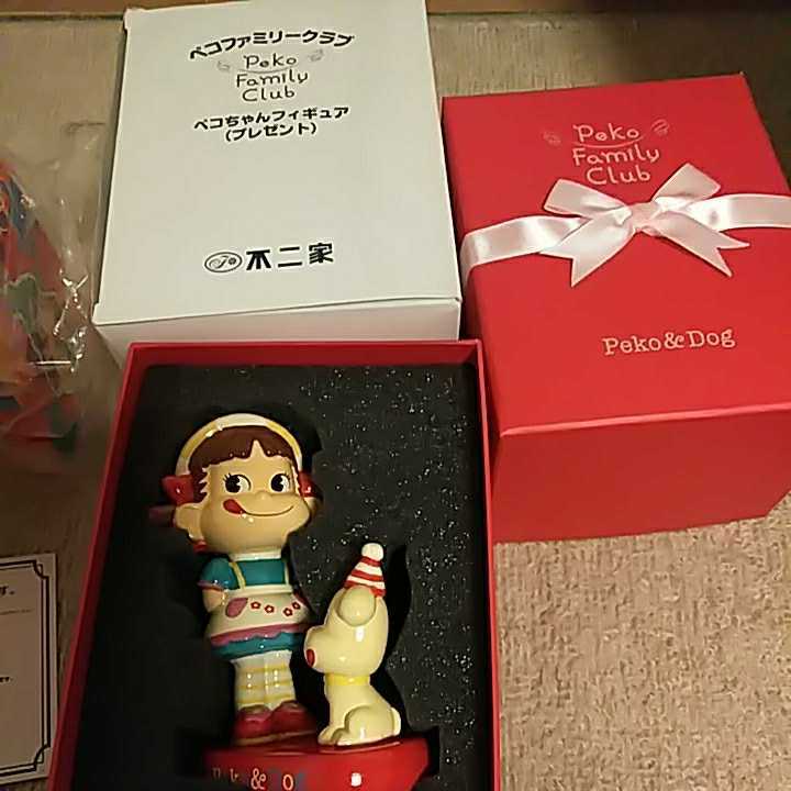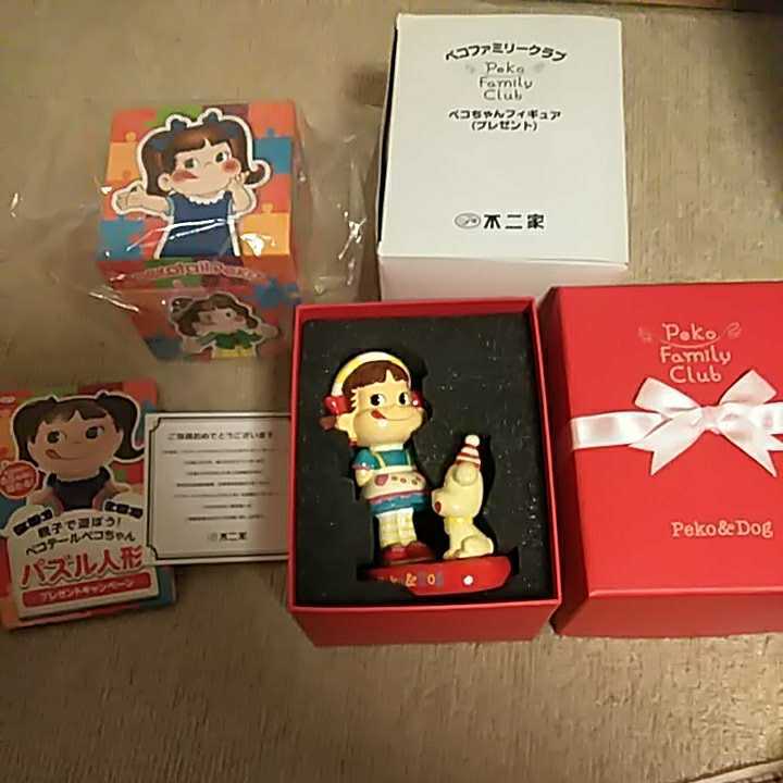 ペコちゃんのフィギュア(陶器)は、ファミリークラブで貰った物で、ペコテールペコちゃんパズル人形は、以前当選した未開封品になります。