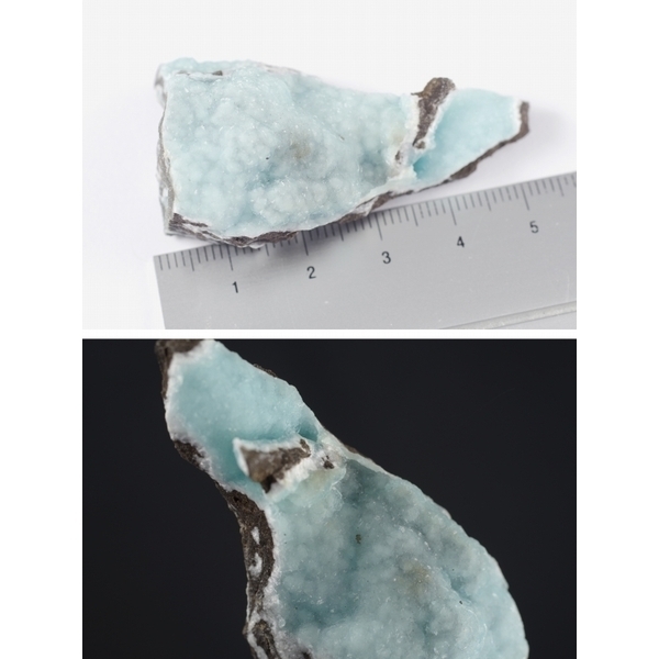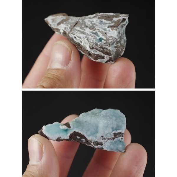 異極鉱の色は、白色や無色、淡青、淡緑、黄色、褐色などが見られますが、こちらは淡い水色。