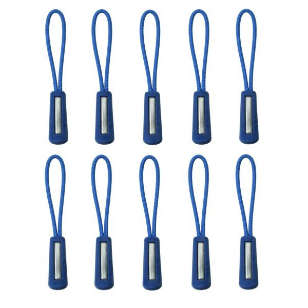 ジッパープル 反射材付き ファスナー チャック 取り付け簡単 つかみやすい ノンスリップ ジッパータブ プルコード 10本セット(ブルー)