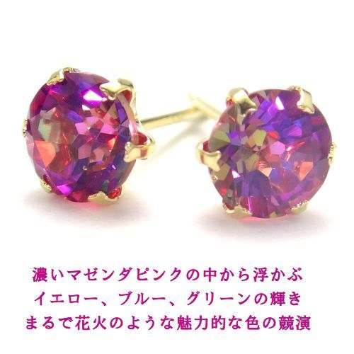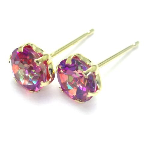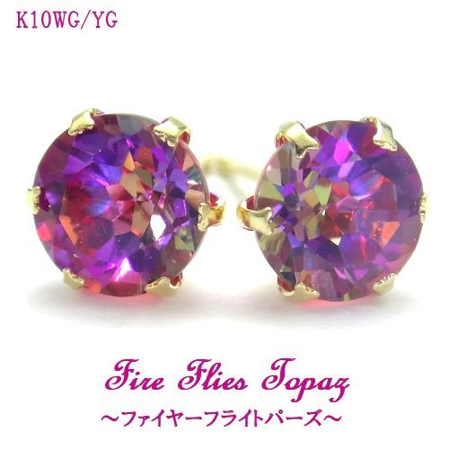 K10 ファイヤーフライ ミスティックトパーズ ラウンド 5mm ピアス ジュエリー YG WG 選べるゴールド スタッド 箱付き