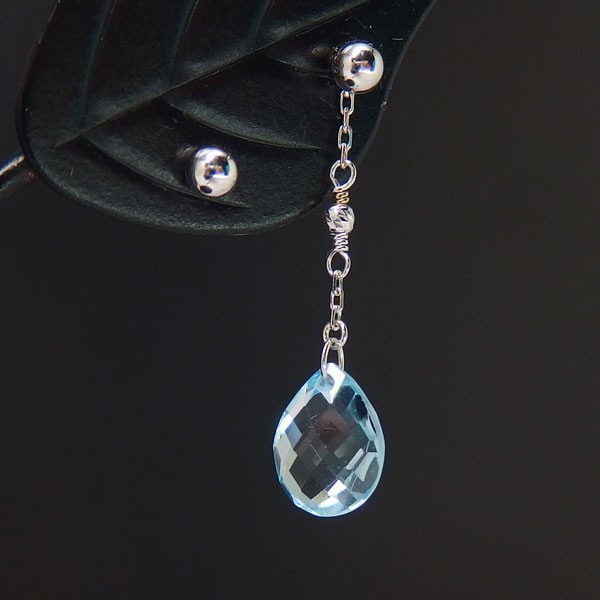 鮮やかな青色のブルートパーズをホワイトゴールドのチェーンで繋いだ、存在感抜群のロングタイプのピアスです。