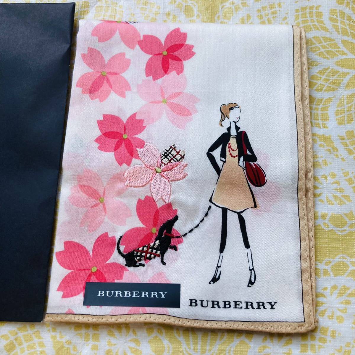 新品/BURBERRY/女の子/ハンカチ/正規品/綿100%/未使用/即決あり/匿名発送/バーバリー/ノバチェック/女性/犬/ピンク/桜/さくら/ダックス