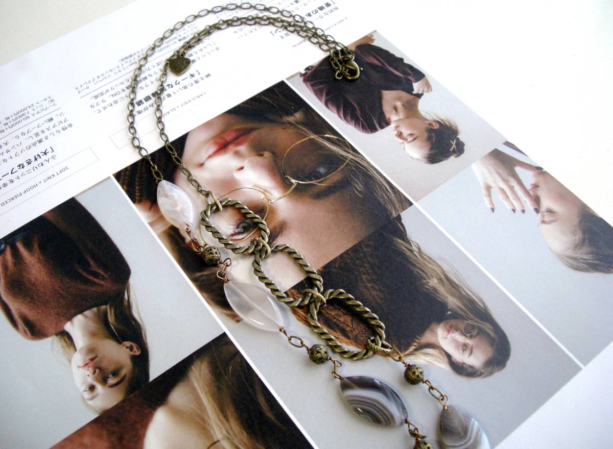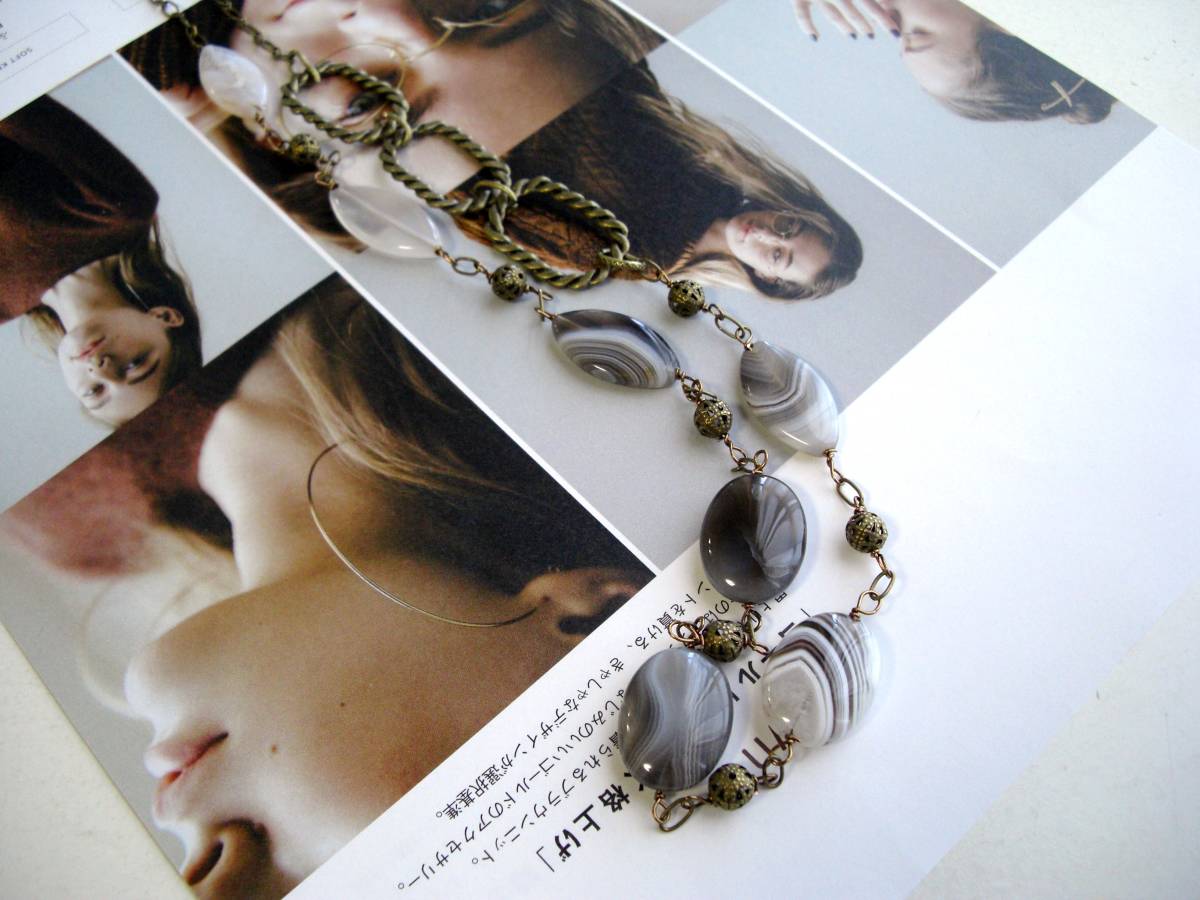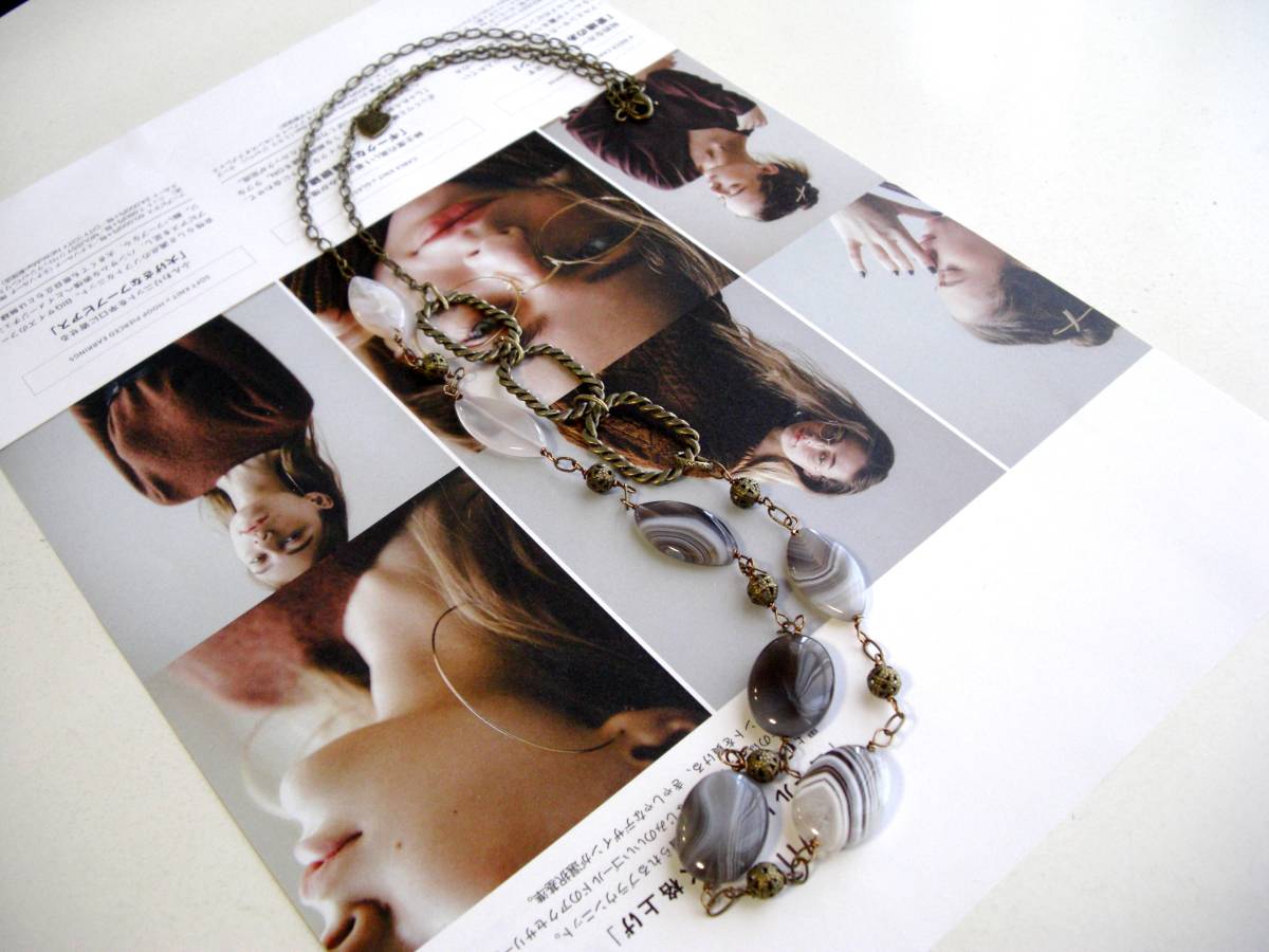 大人色・コレクション・・シリーズです♪気に入りのグレー・・繊細なボツワナアゲートのネックレスです♪グレーカルセドニーや透かし玉やデザインリングを合わせて大人のロマンチックし ています♪20ミリから30ミリ位までのフラットタンブルやマーキスなどデザイン違い、大きさ違いのボツワナアゲートやグレーカルセドニーを繋ぎました♪長さは95センチ位で調節自由で す♪2連にされても素敵です♪♪お揃いのブレスレットやピアスも出品しています♪♪ハンドメイドをご理解いただいてノークレーム・ノーリターンでお願いします♪