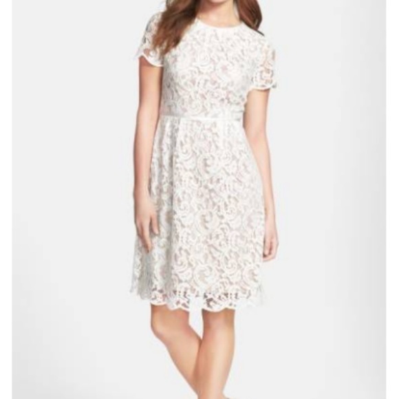 美品 2/9号 Tadashi Shoji ADRIANNA PAPELL|アドリアナパペル ワンピース ドレス ホワイト/ベージュ フレア WS17142G