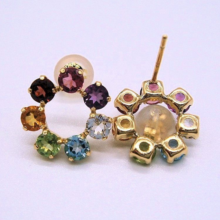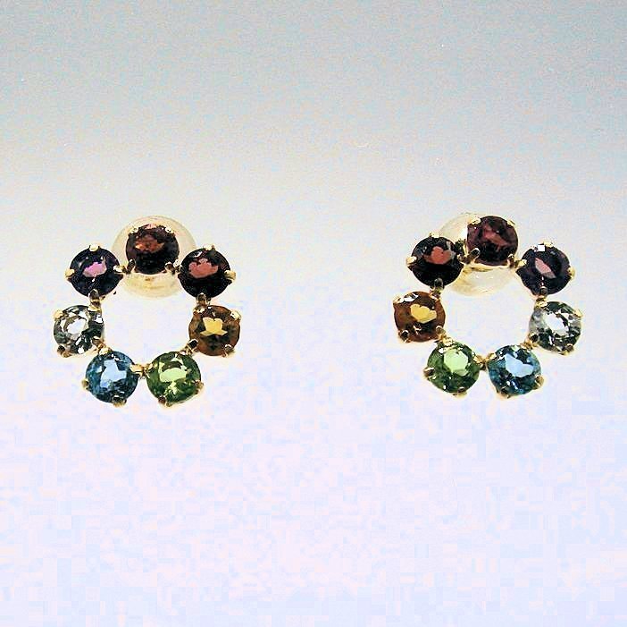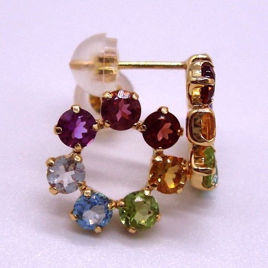 PC1346:K18YG 半貴石 7色 レインボー ピアス