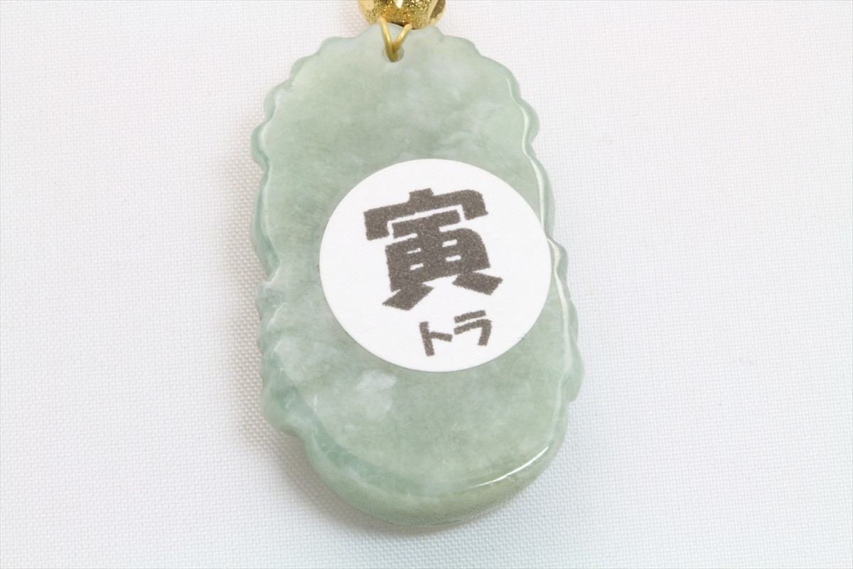 無含浸 無染色 本翡翠 十二支 寅 手彫り高級根付