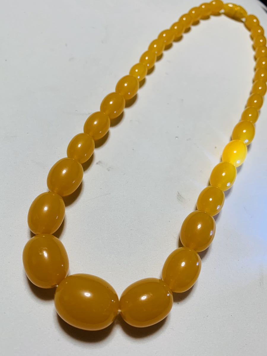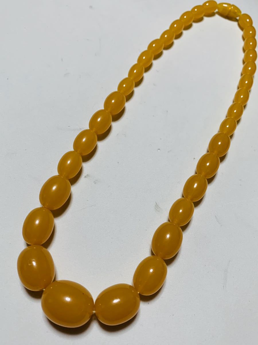 鼈甲風の、美しいネックレスです、一番大きなひと玉は20×15ミリ、一番小さなひと玉は10×8ミリです、ネックレスの長さは43センチです