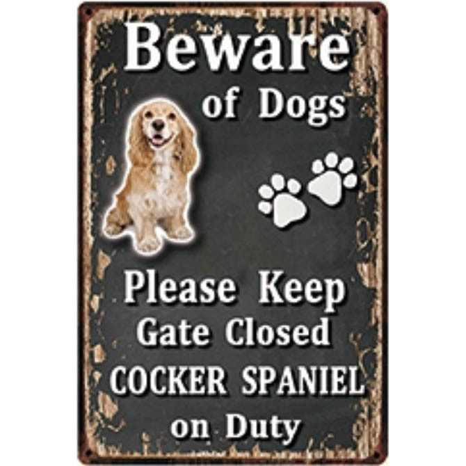 A3204 メタル サイン ブリキ 看板 金属 製 プレート パネル 注意 危険 動物 ペット 犬 番犬 猛犬 コッカー スパニエル 3668