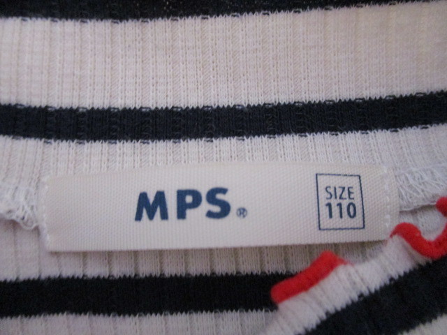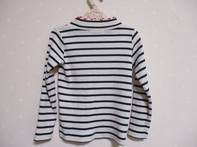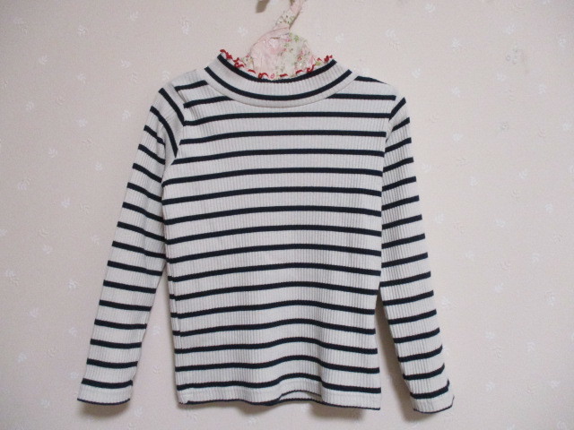 ■ MPS ■ 可愛いハイネックボーダー柄長袖Tシャツ 110㎝ 白 10221