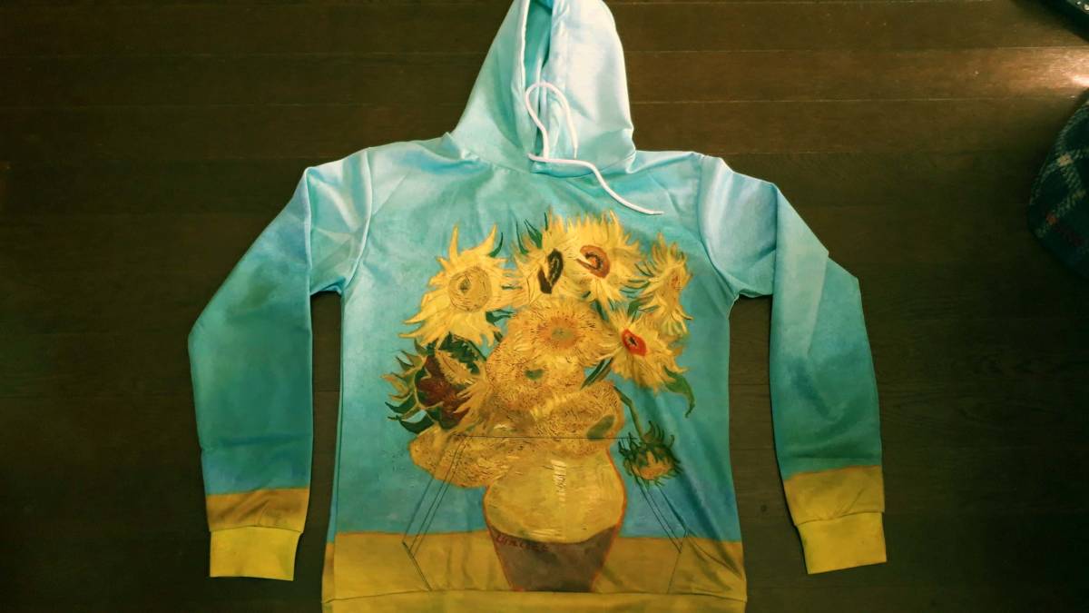ゴッホ ひまわり 両面プリント パーカー Mサイズ