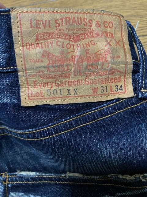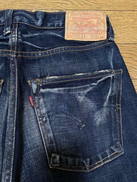 LEVI'S リーバイス LVC LOT 501XX 55501 セルビッチ Big-E  隠リベット ダメージ加工デニムパンツ 鬼ヒゲ加工 ハンドメイド 未裾直 日本製 濃紺 31                             BJBA.B