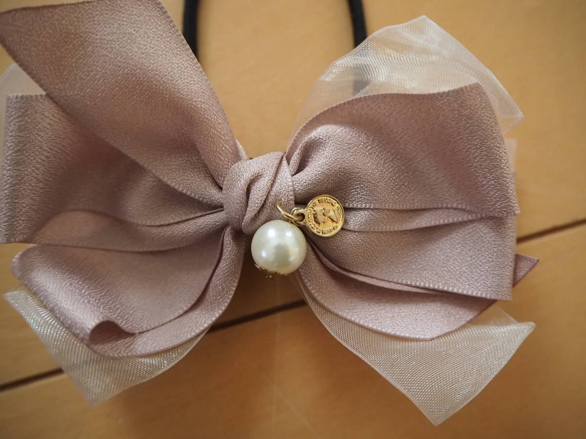 右:ピンクベージュの2種類のリボンにパールビーズ
