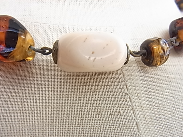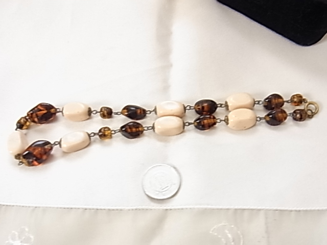 ヴィンテージ/ビンテージ 品質不明 鼈甲調のストーン調とベージュピンク系のストーン調 年齢を選ばないデザイン ネックレス♪