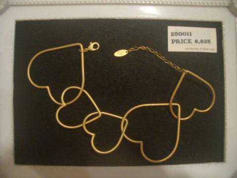こちらは未使用保管品です♪ 状態は普通にキレイだと感じます♪ アジャスターにはNCの刻印、長さは、最短19、最長23センチ程度です♪ 1番大きなハートのサイズは横縦4,5×4センチほど(素人採寸ですので目安でお願いします♪)♪ ツヤ消しゴールドカラーの大小のランダムのハートがキュートな商品で(#^.^#) 定価は6825円☆ 格安ですのでncnrで御了承いただける方のみ、どうぞ宜しくお願いします♪ 他にも可愛い物を沢山出品しておりますので是非ご覧下さい(^_-)-☆ まとめて取り引きはごめんなさいですが、同梱は大歓迎です♪ 必ず、自己紹介をご覧くださいませ!! | |||