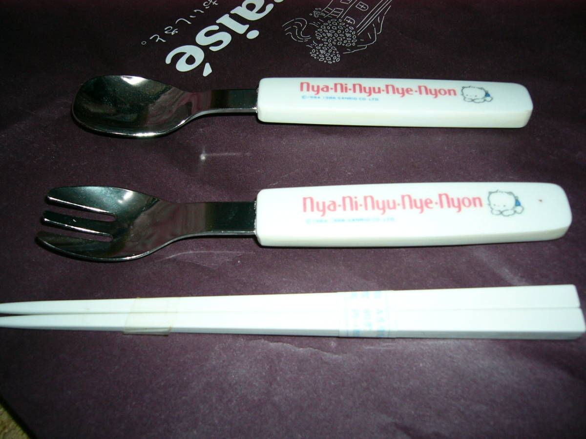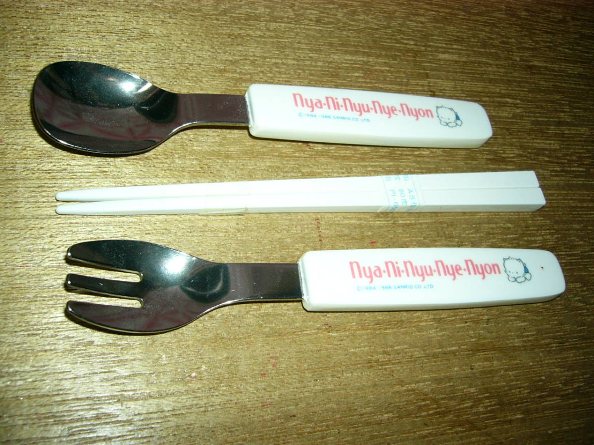 おしめでも大人気 サンリオ 猫 ニャニィニュニェニョン 1984年 白 箸&スプーン&フォーク