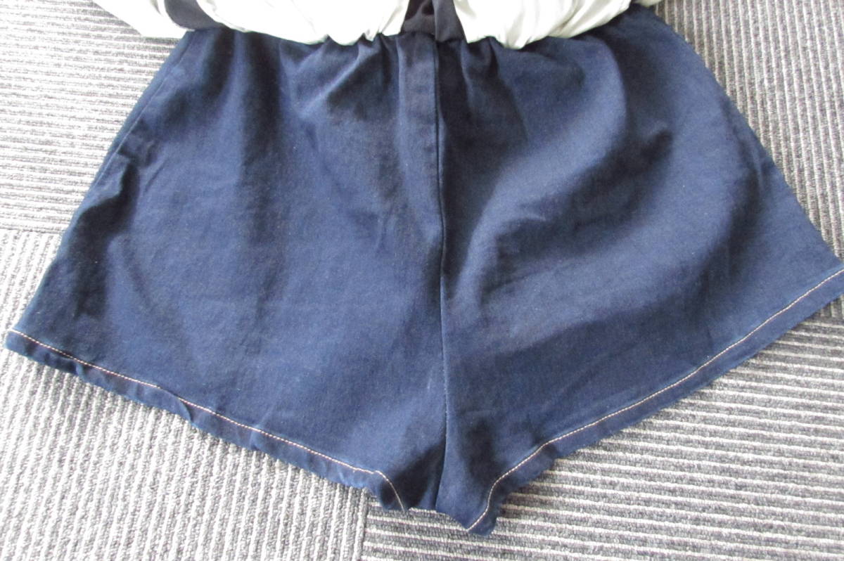 ウエストは後ろ部分がゴム素材で、ベルト付きです。