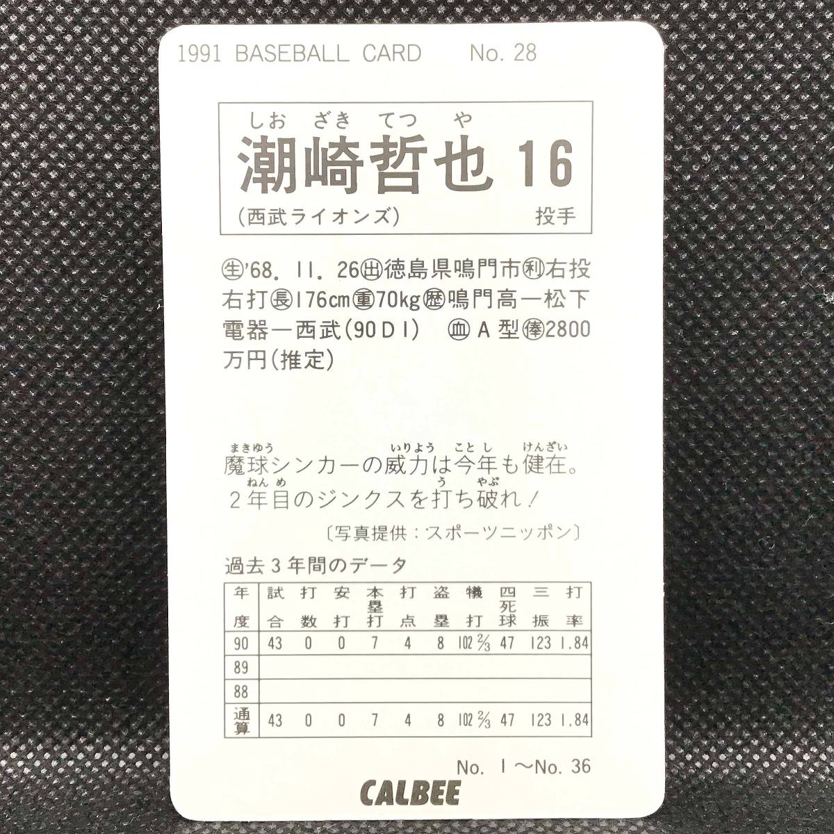 | CFP【当時もの】カルビー 野球 カード 1991 No.28 潮崎哲也 プロ野球 西武ライオンズ | |