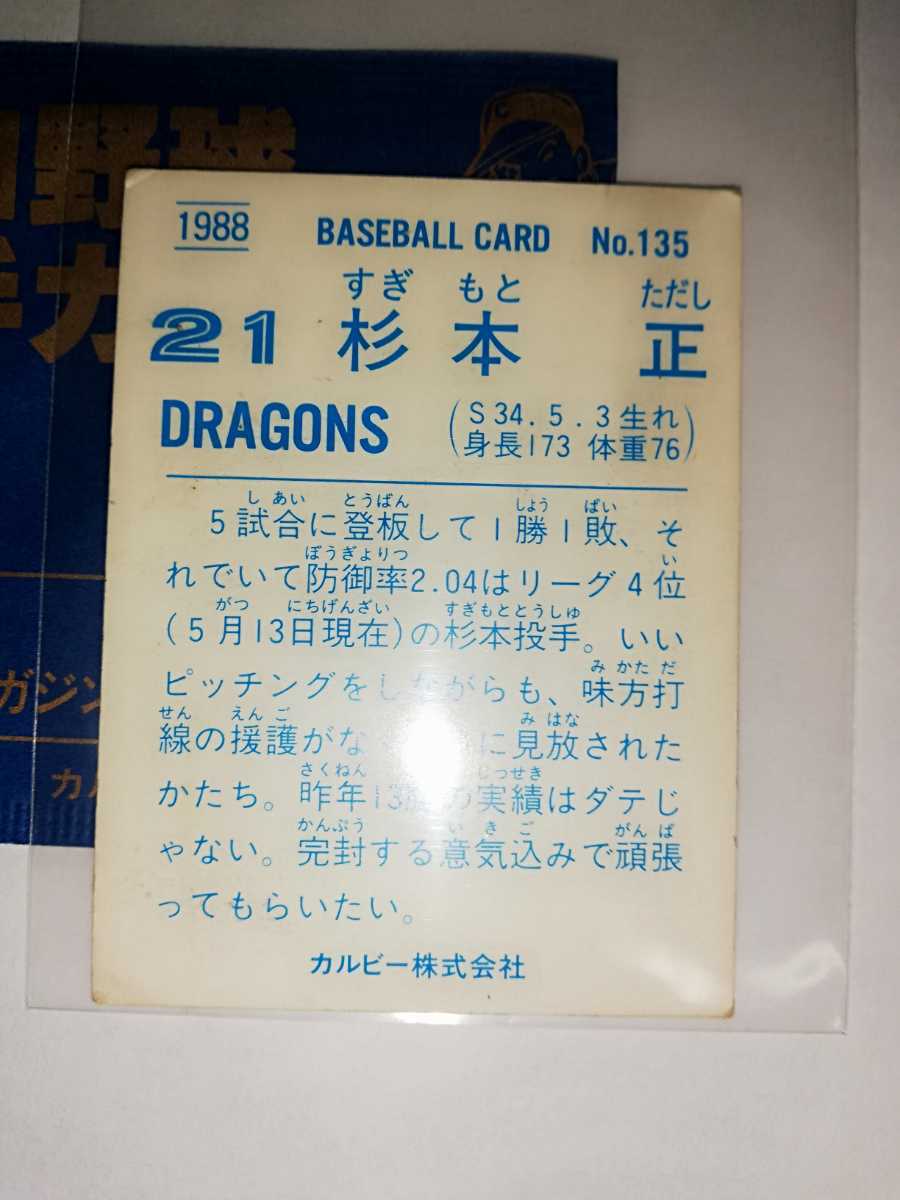 杉本正 88 カルビープロ野球チップス No.135 中日ドラゴンズ