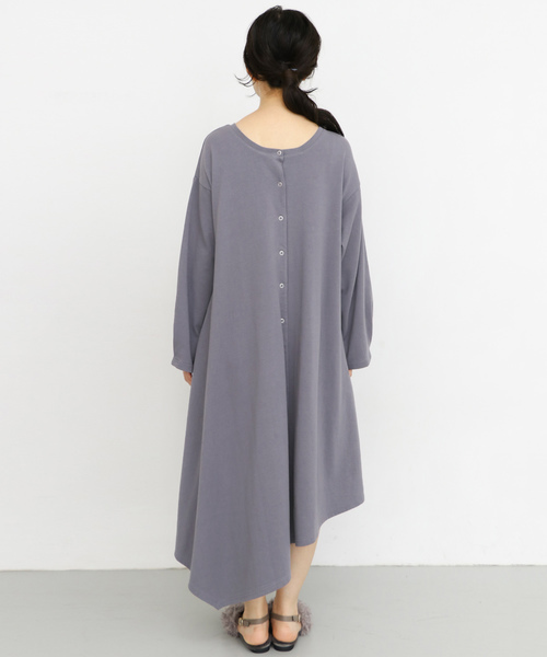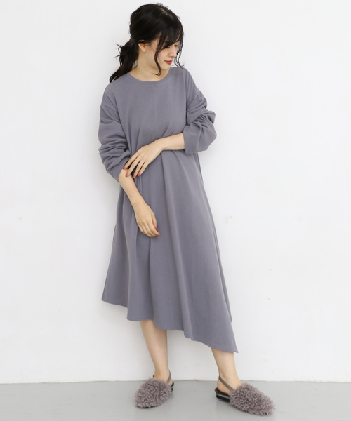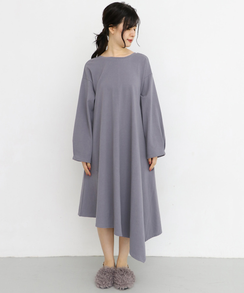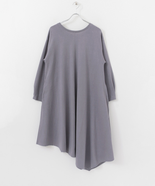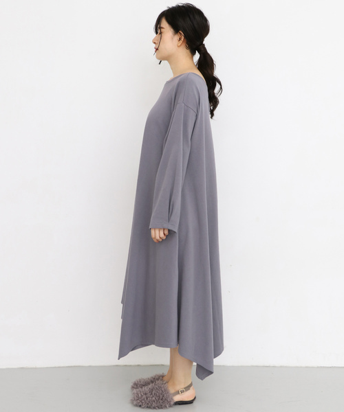 大胆なアシンメトリーヘムが目を惹くワンピース。