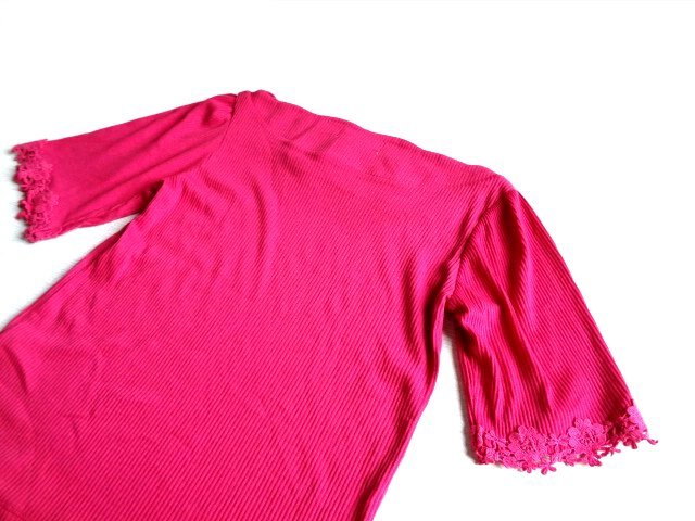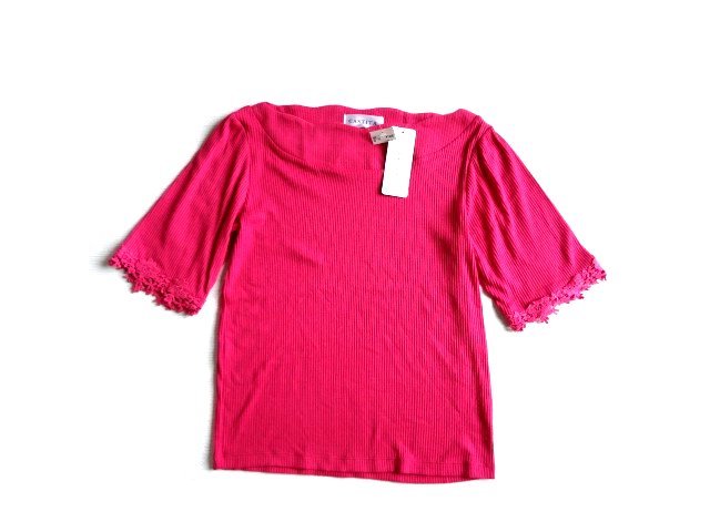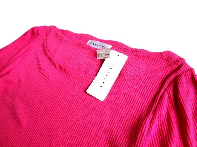 新品 定価1900円 CASTITA ボートネック レース使い テレコ Tシャツ カットソー ピンク