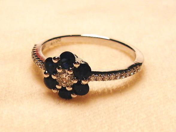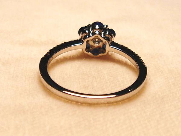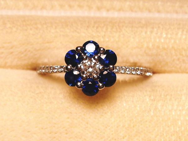 センターストーンのサファイアは6ピース。ラウンドタイプで高品質です。