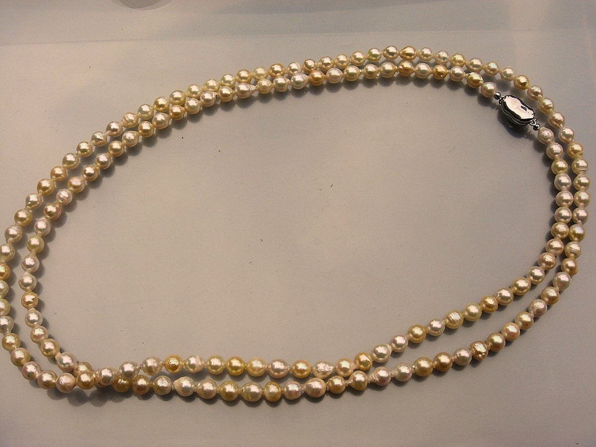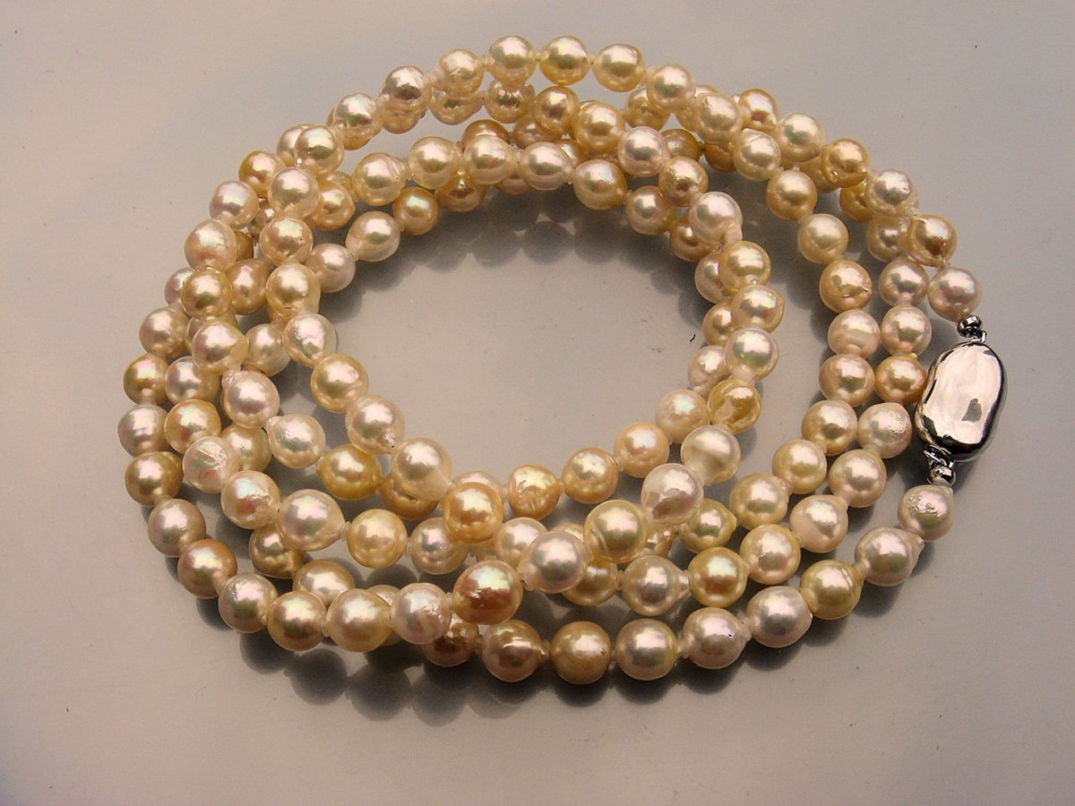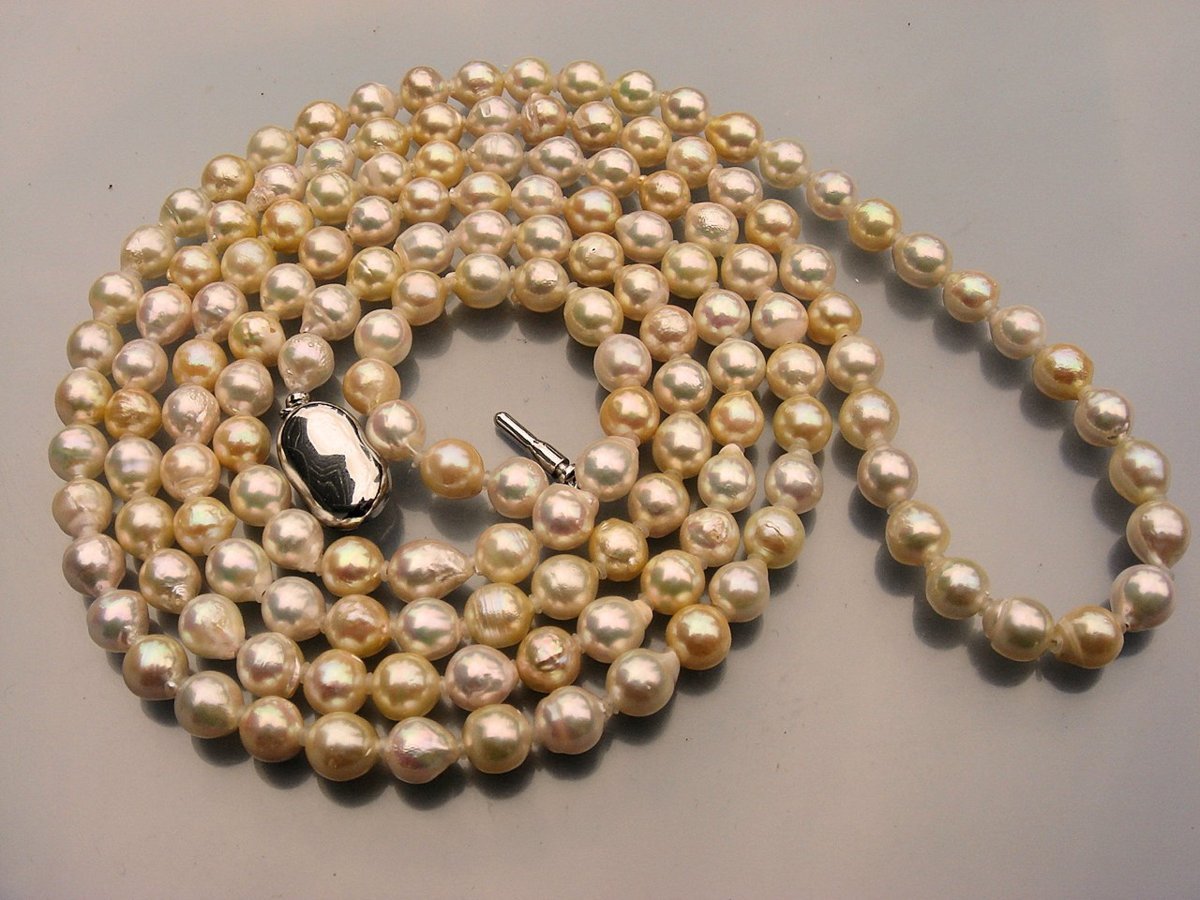 全体的にバロック系統の珠を使用し、シワ珠も多いが照りが良いのが魅力的です。真珠本来の自然な形を楽しみましょう。