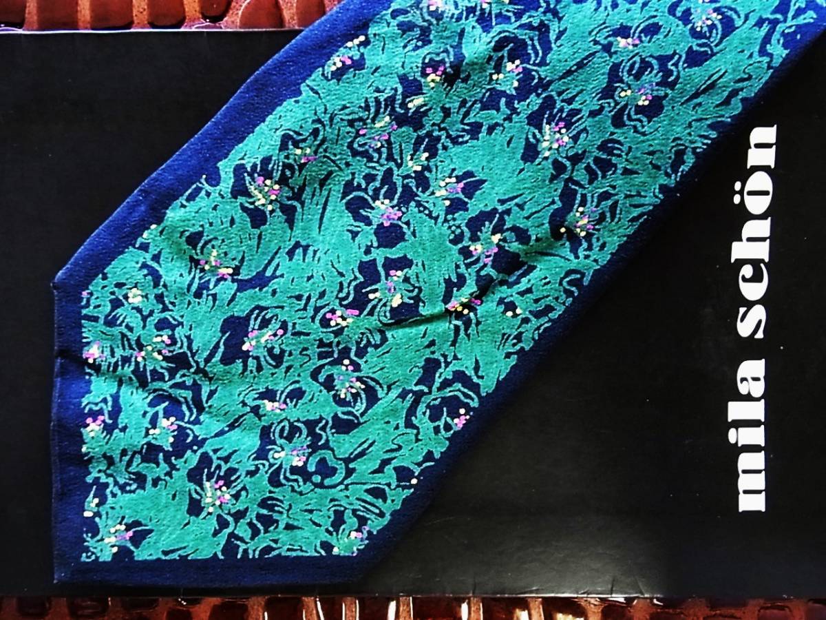 ○E109R●USED並●ミラショーン【ロゴ入・花】ネクタイ
