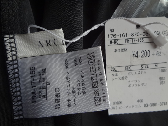 新品 定価4200円 アルシーヴ archives レース ブラウス 黒 トップス シャーリング ペプラム