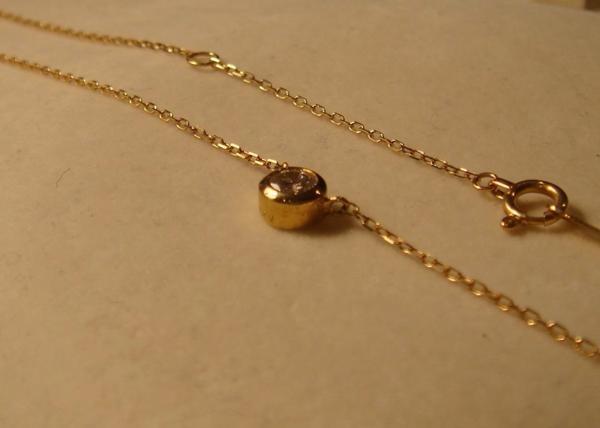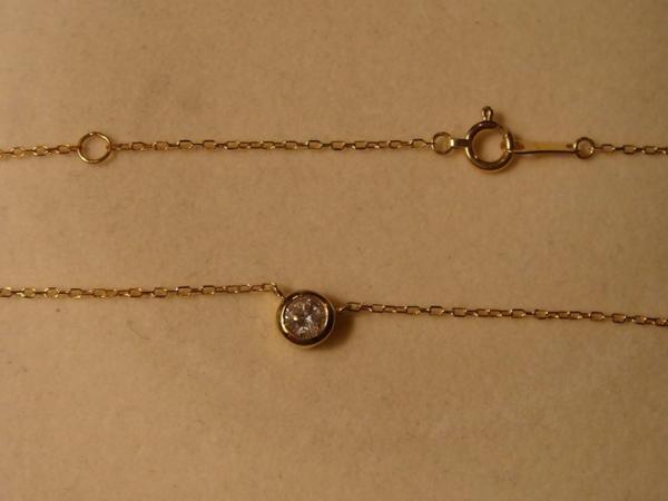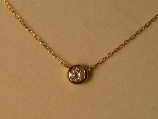 0.2ctの大粒ダイヤをシンプルにK18YGでフチ取りしたオーソドックスなプチネック。