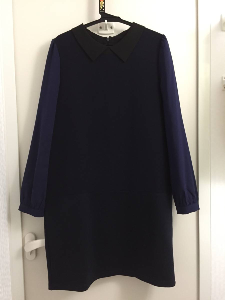 インタープラネット★ワンピース サイズ : M (肩幅36㎝、身幅44.5cm、袖丈57.5cm、着丈81.5cm) 材質 : 写真2枚目でご確認下さい 色 : 袖・上部・ウエストより少し下からの切替部分の3か所で 紺の色が違います。襟は黒です。 裏地付です。 | |