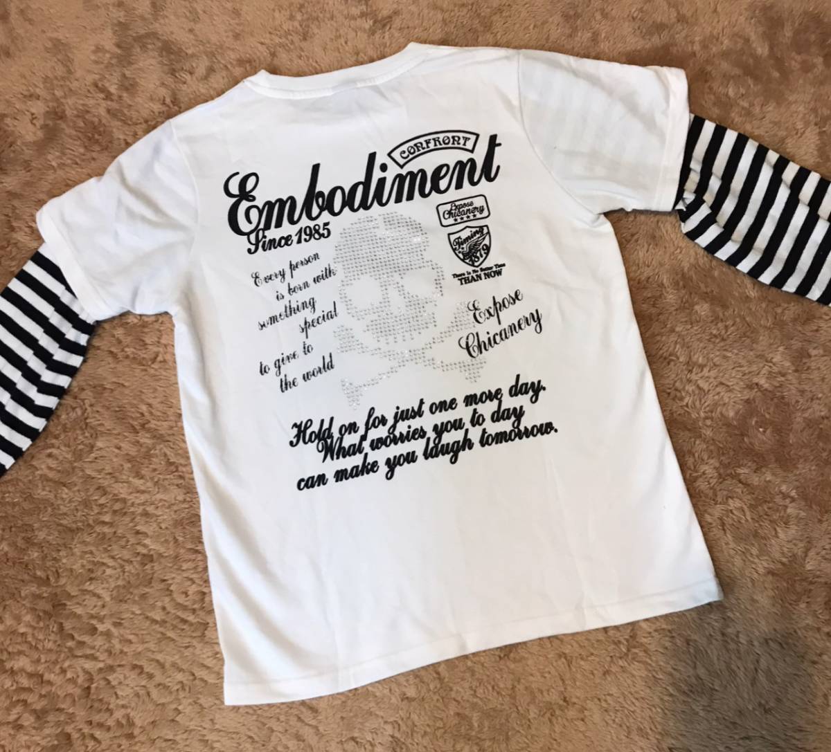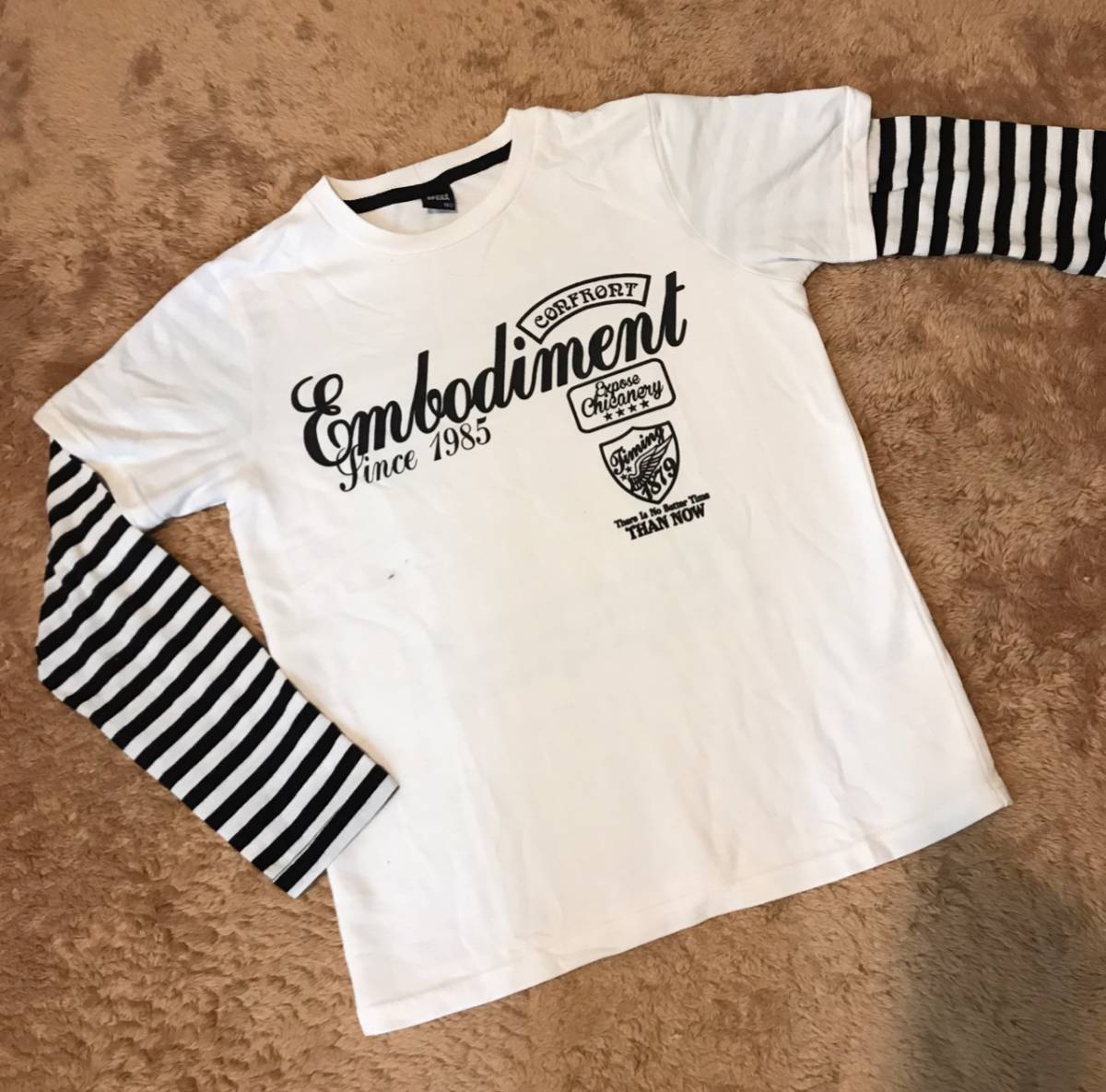 数ある中よりご覧いただきありがとうございます。 気持ちよくお取引させて頂くため自己紹介や商品説明最後までお読みいただきますようお願い申し上げますm(__)m °°°商品説明°°° サイズ:160㎝ 丈:約58㎝ 身幅:約44㎝ 素材:ポリエステル65% 綿35% 色:白 重ね着風ロングT♪バックにもキラデカプリ入りでオシャレ♪ °°°°°°°° 美品になります 定形外送料は450円 発送の希望がない場合は定形外での発送になります 質問がありましたらお気軽に質問お願いいたします | |||