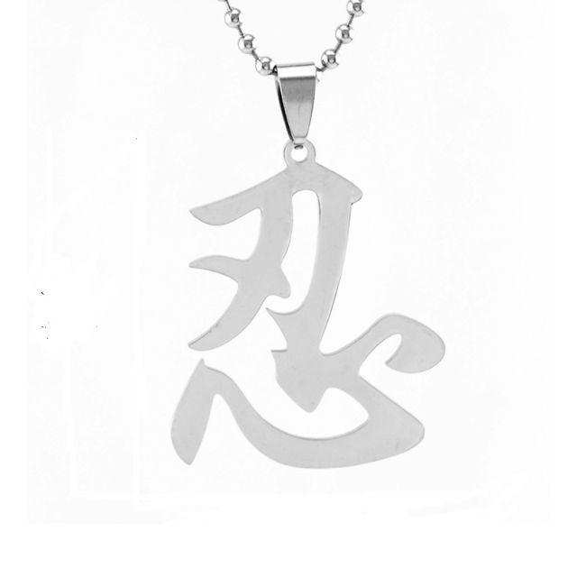 忍 漢字 ステンレス ボールチェーン ネックレス ペンダント 忍者 和風 和柄 シルバー 銀色 メンズ レディース かっこいい 日本語 おしゃれ