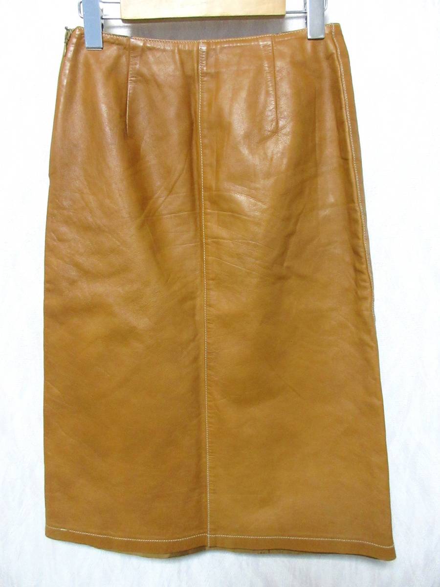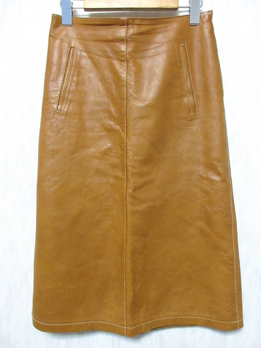 マンド mando レザー ひざ下 スカート キャメルブラウン 38 北2260