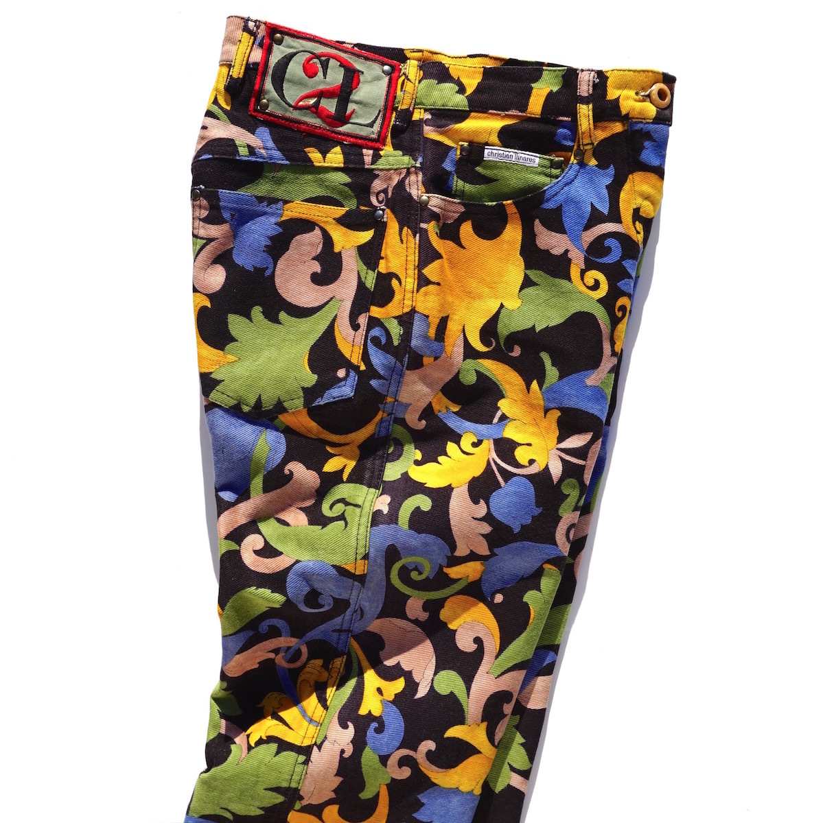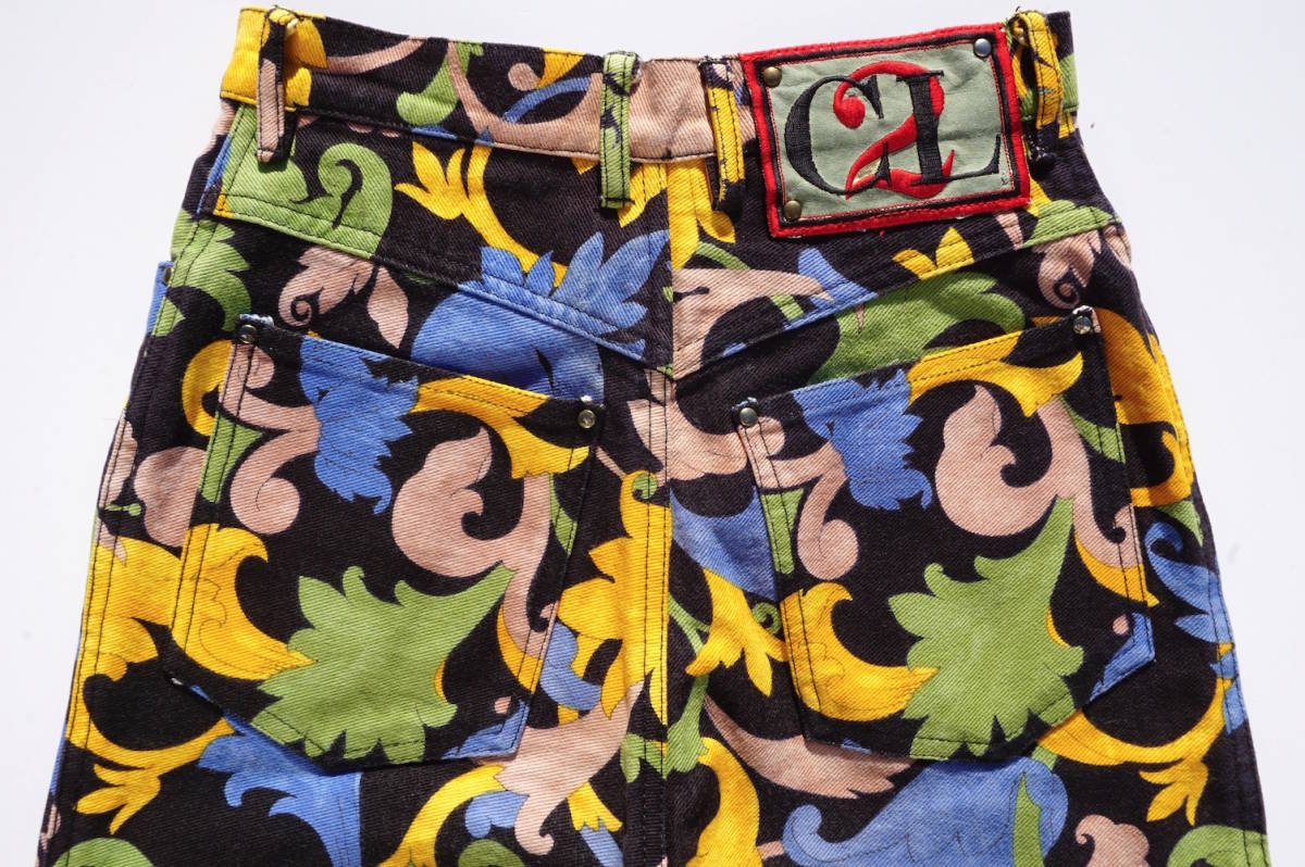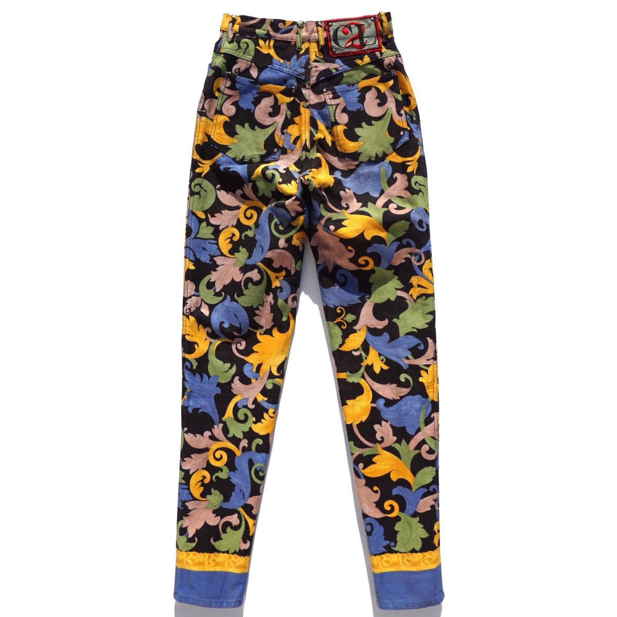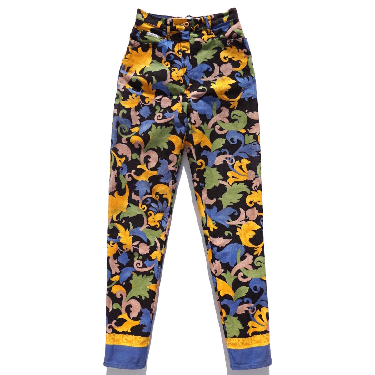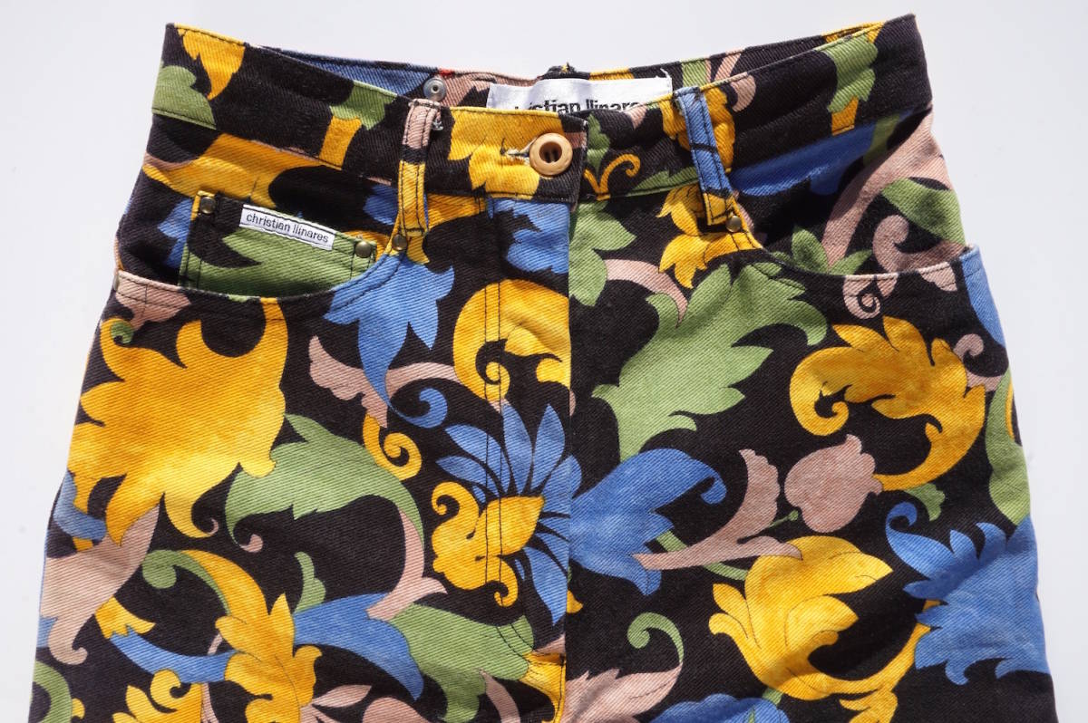 1980s~90s ヴィンテージ christian llinares アラベスク総柄 ハイウエスト スリムテーパードパンツ W25 フランス デザイナーズ 古着