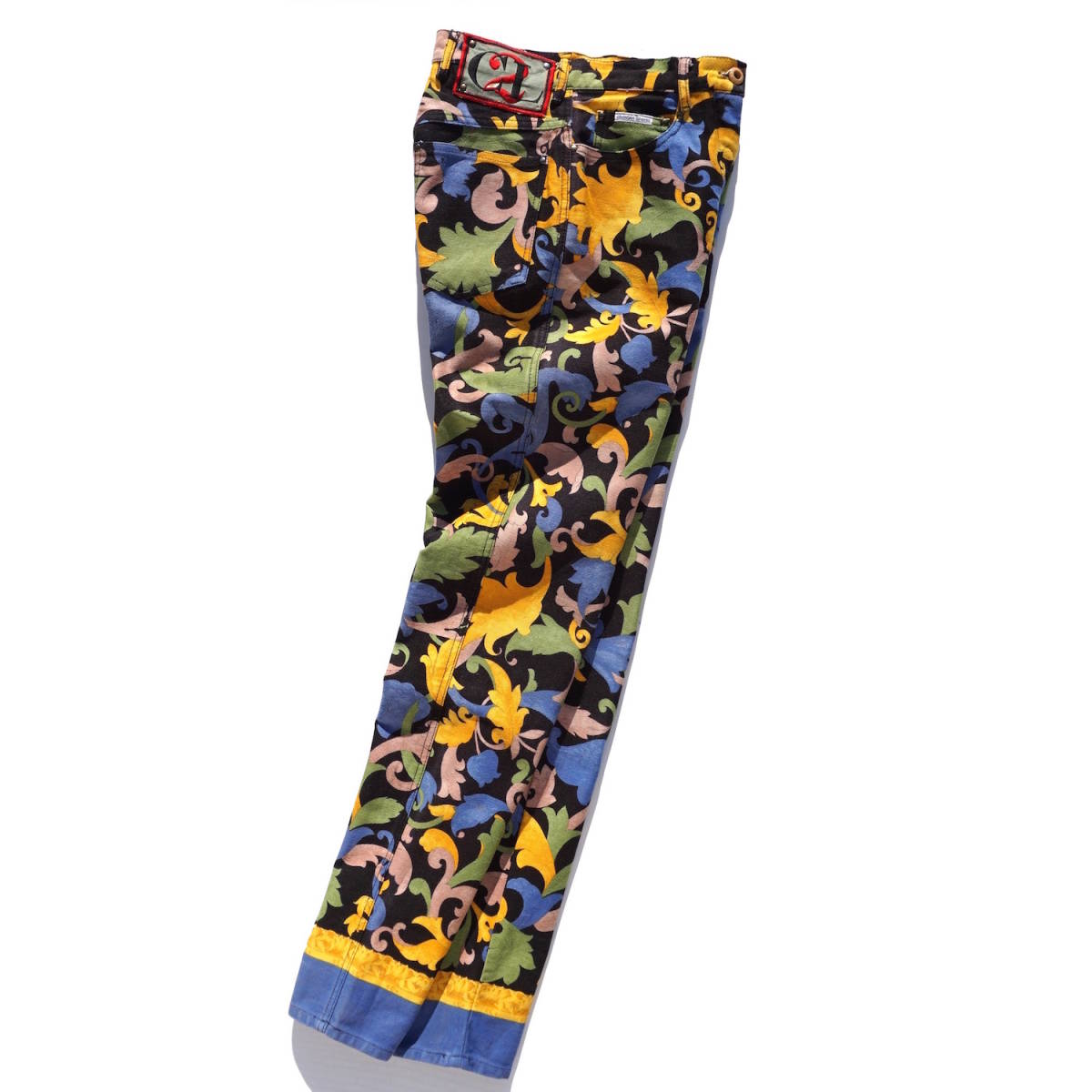 ブラック基調の鮮やかなアラベスク柄の、コットンパンツ。