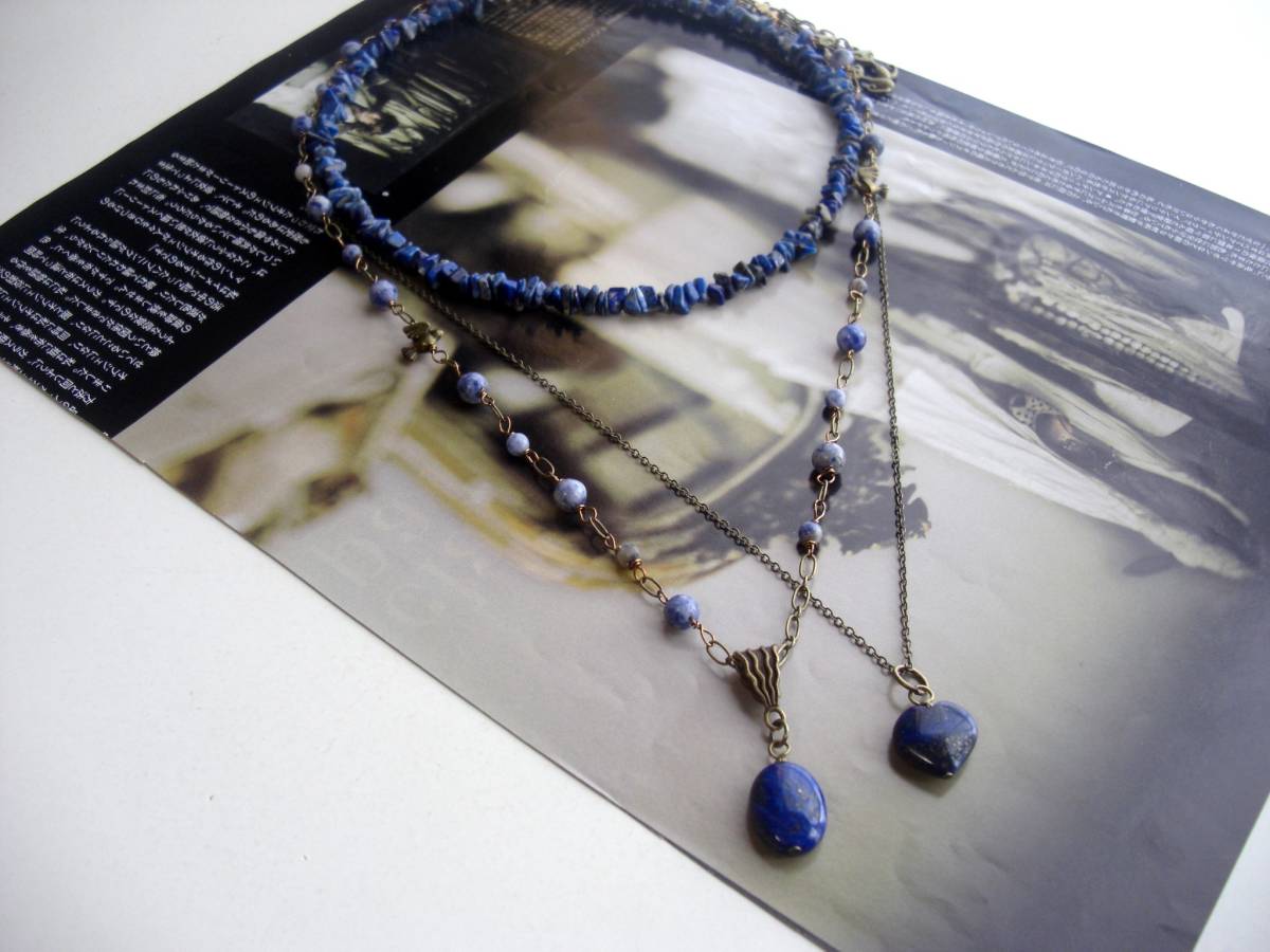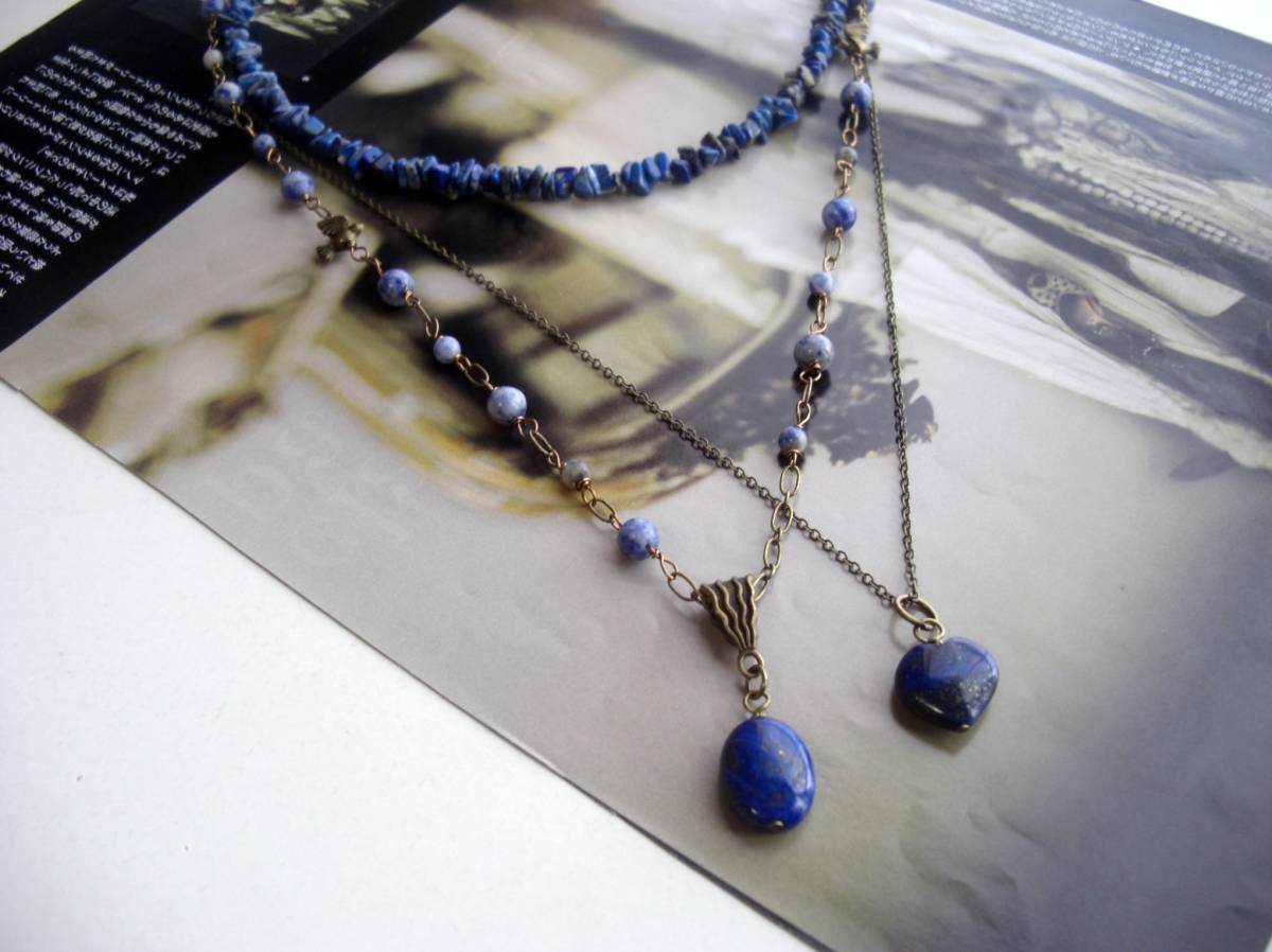 個性という魔法・・シリーズです♪ラピス・セレクト・・爽やかなラピスのネックレス3本セットです♪画像のように色々な組み合わせで楽しんでいただけます♪4ミリ位のラピスのさざれはシンプルなデザインです♪長さは40センチ+アジャスター12センチで全長52センチ位です♪12ミリ位のラピスのハートは華奢なチェーンを合わせました♪長さは80センチ+アジャスター8センチで全長88センチ位です♪3ミリ、5ミリの丸玉のデニムラピスを繋いだネックレスのトップは12×15ミリ位のオーバルのラピスを合わせました♪モダンな座金を合わせてシックな表情です♪長さは73センチ+アジャスター12センチで全長85センチ位です♪トップは3.8センチ位です♪お揃いのブレスレットやピアス、リングも出品しています♪シンプルで飽きのこないいつまでも着けられるデザインを考えて作りました!ハンドメイドをご理 解頂いてノークレーム、ノーリターンでお願いします