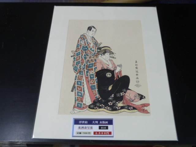 20 P #115 浮世絵 写楽(東 州斎) 手摺 木版画 寸法約 縦41,5cm・横30,5cm 説明書付