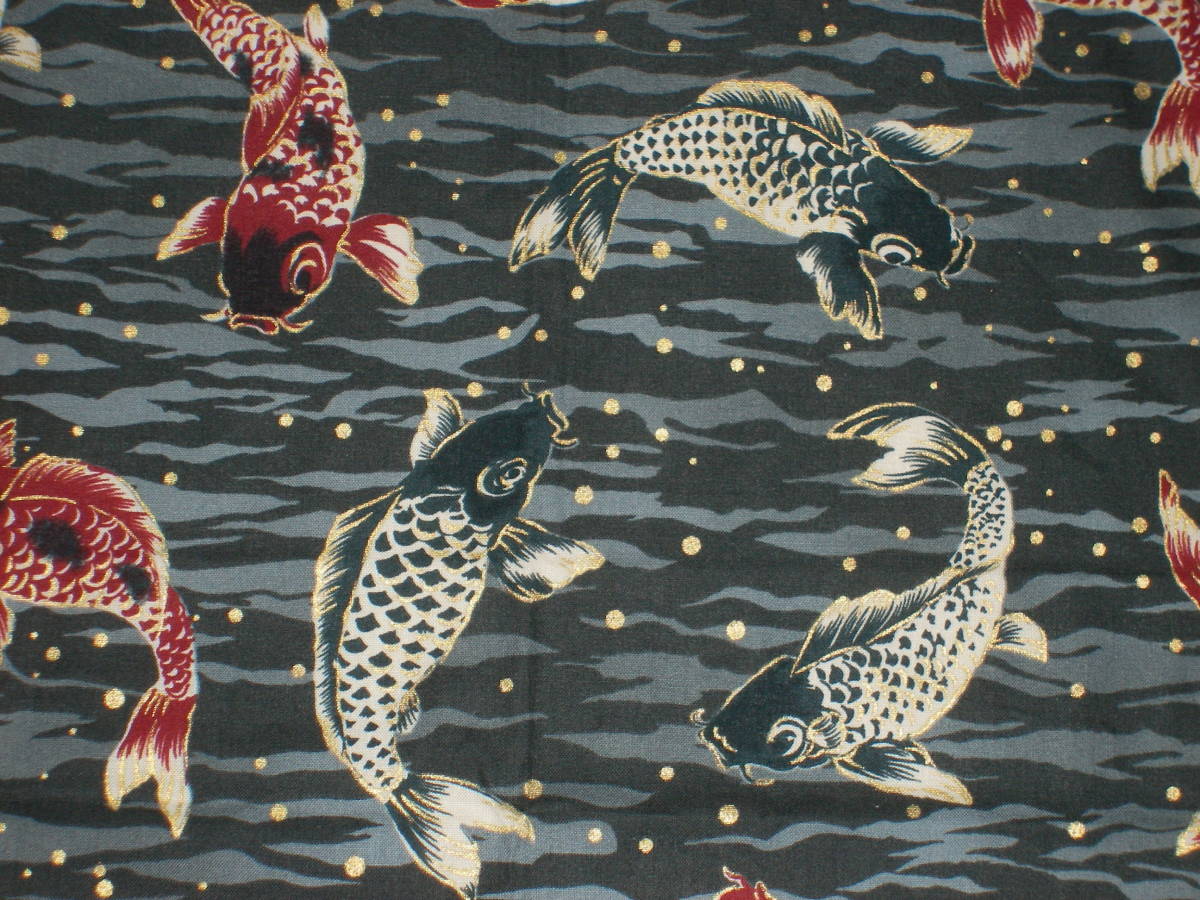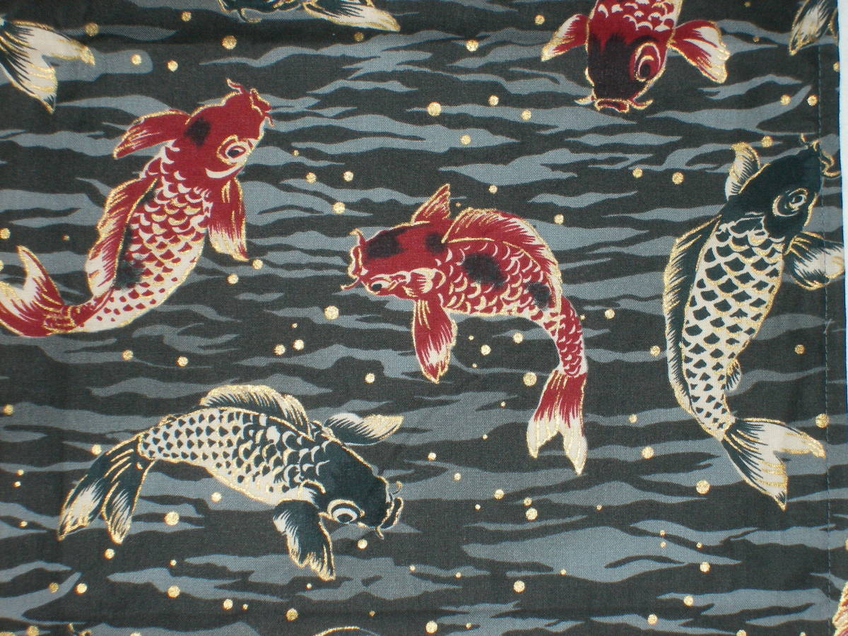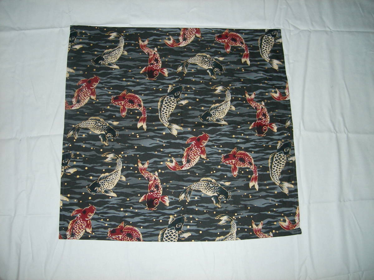 手作り、綿100%、50㎝の風呂敷、鯉、グレー波