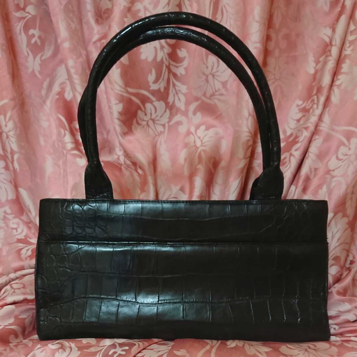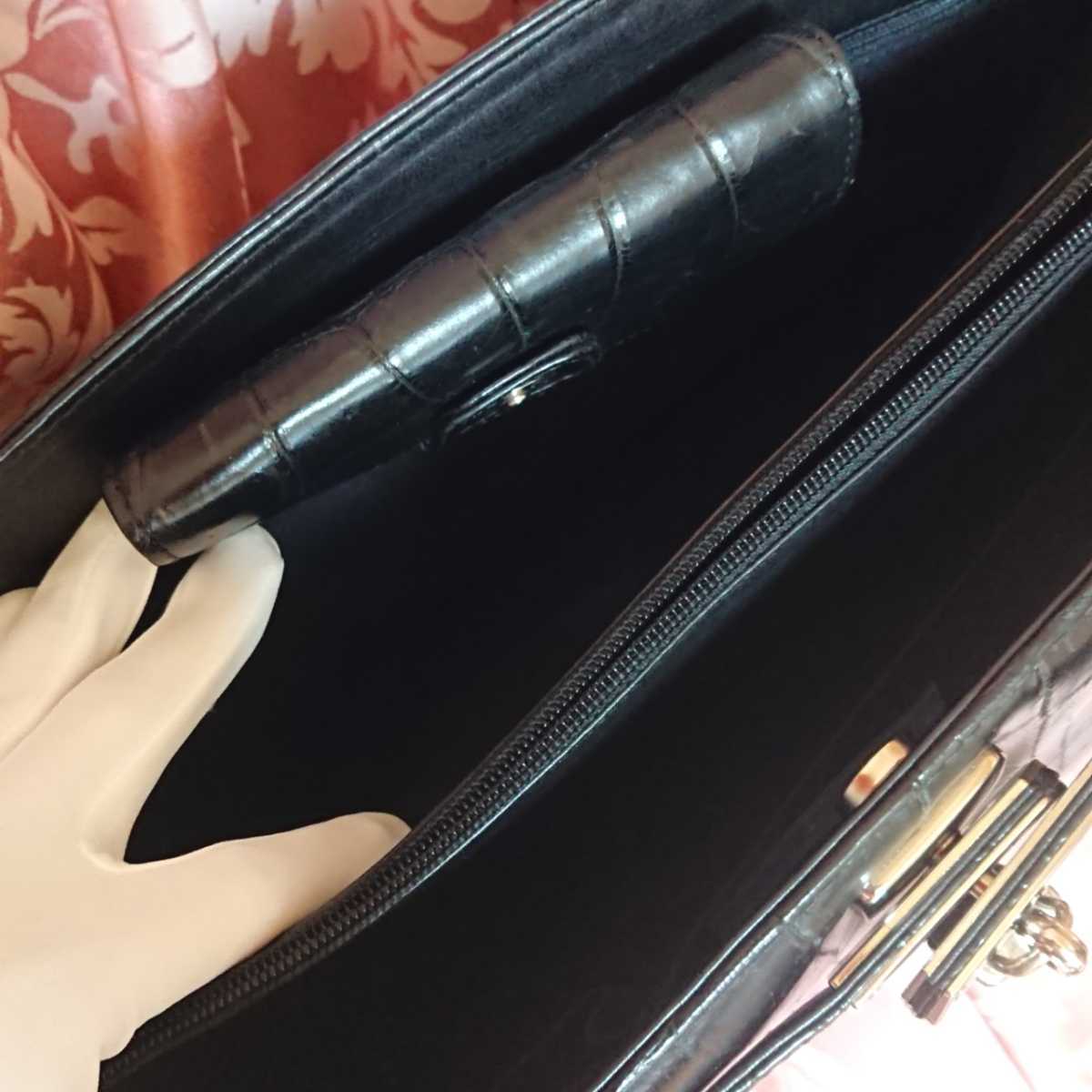【皮革の宝石】と称されるクロコダイルを使用。 腹部の革をバッグの表面中央に配したセンター取り。 左右対称に腑柄が綺麗に並んだ、貴重なお品です。 横長のショルダーバッグには珍しい、カデナロックデザイン。 裏地は厚手の柔らかな黒の布地で 内側中央に仕切りファスナーポケットなど 内側外側に計5ヶ所のポケット。 開閉口はマグネット。 底鋲が四隅と中央に付いていますので 置いた時に底が汚れにくくなっています。 目立った傷スレのないお品です。 ●主素材:クロコダイル革 ●仕様:マット加工 ●本体サイズ:縦 20㎝/横 39㎝/マチ 11.5㎝ ●持ち手長さ:55㎝ ●ポケット:外側オープンポケット×1 /内側中央仕切りファスナーポケット×1 /内側ファスナーポケット×1/内側オープンポケット×2 ●底鋲:5ヶ所 ●金具:シルバー金具 ●付属品:カデナ鍵2本(飾り) |