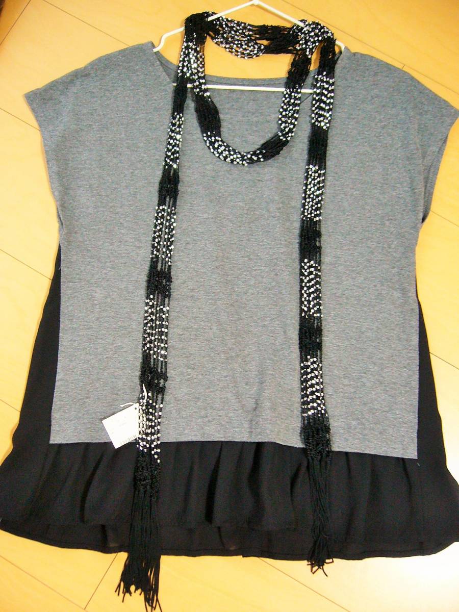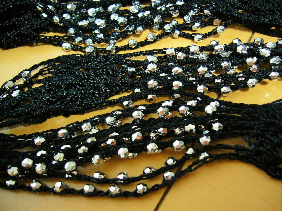 新品タグ付き【any FAM★エニーファム】ストール★キラキラ★ビジュー★ビーズ★ブラック★ネックレス★アクセサリー★フリンジ★スカーフ