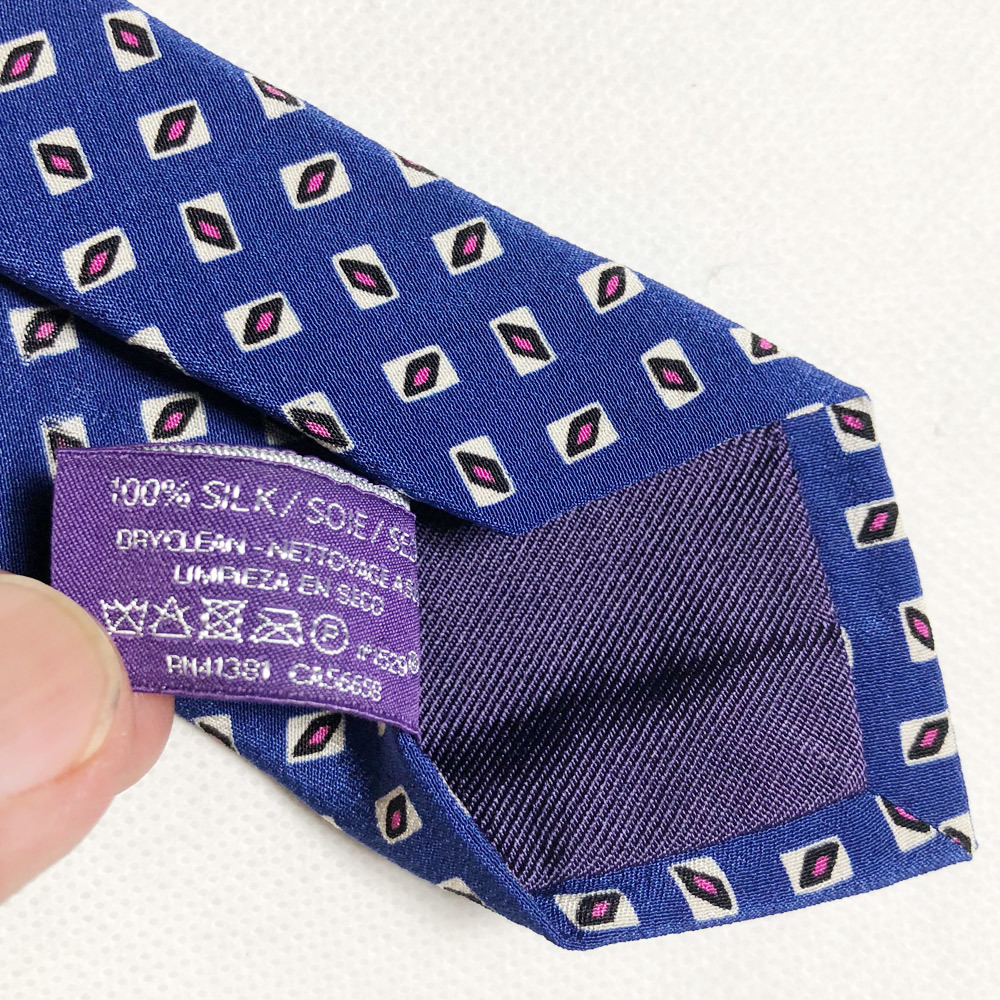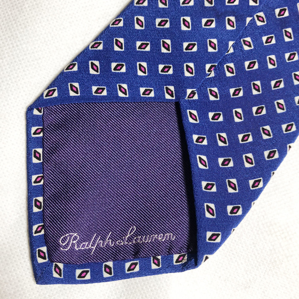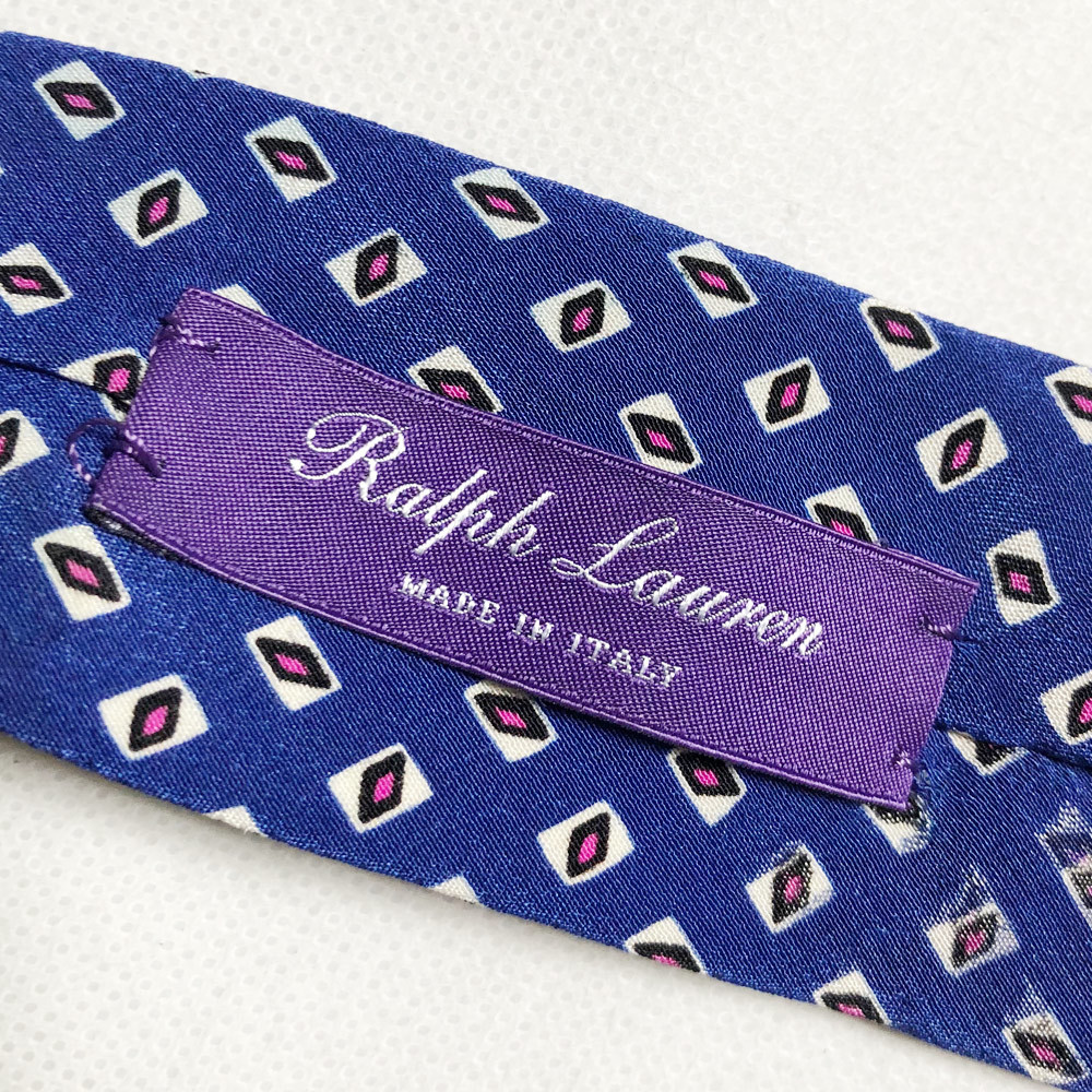 ラルフローレン パープルレーベル シルクタイ ネクタイ POLO RALPH LAUREN PURPLE LABEL MADE IN ITALY イタリア製 小紋柄 SILK BLUE レア