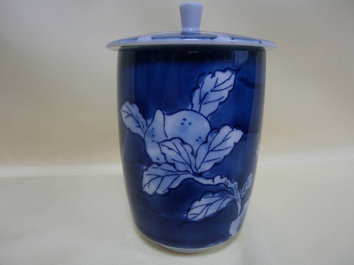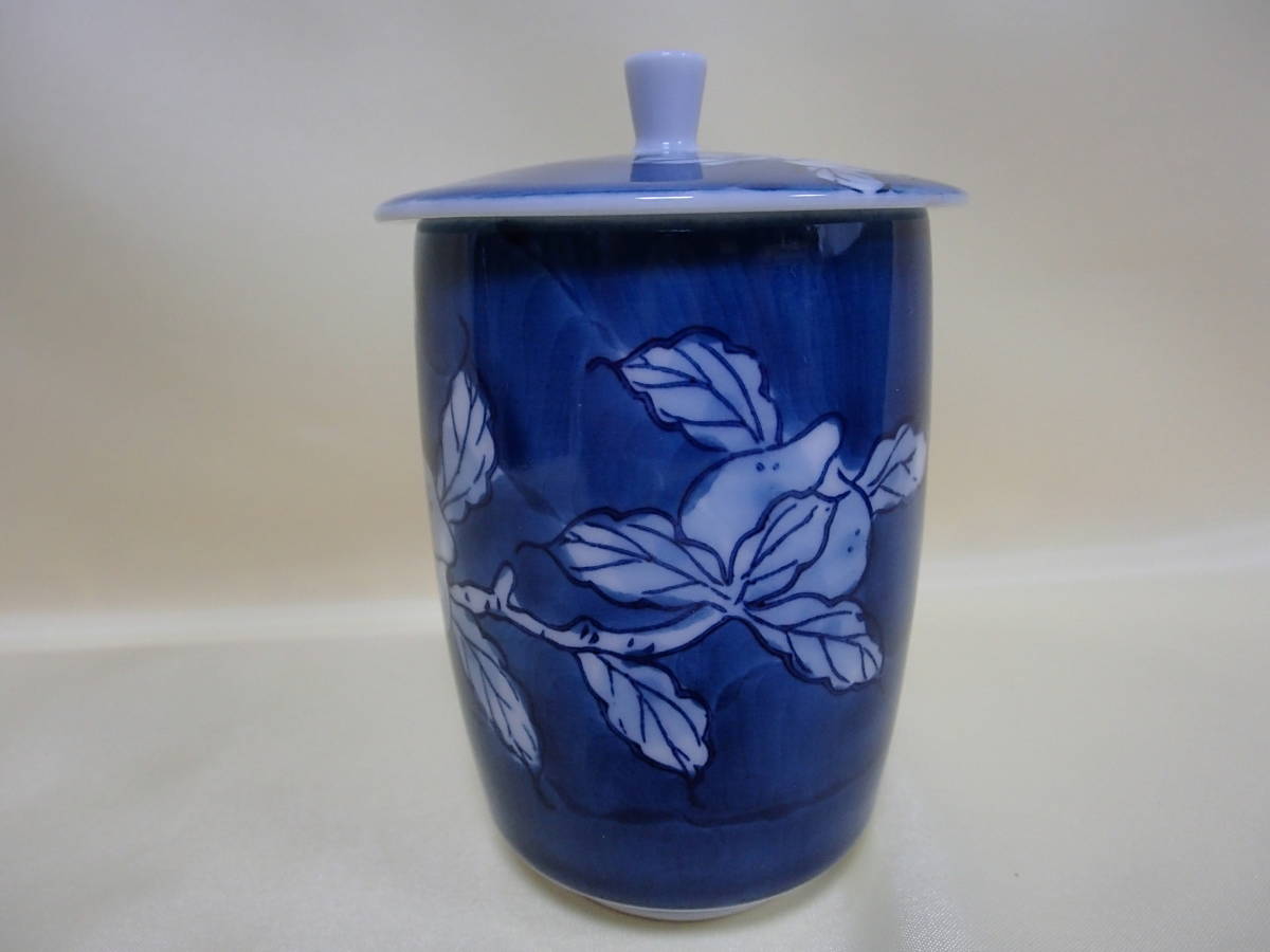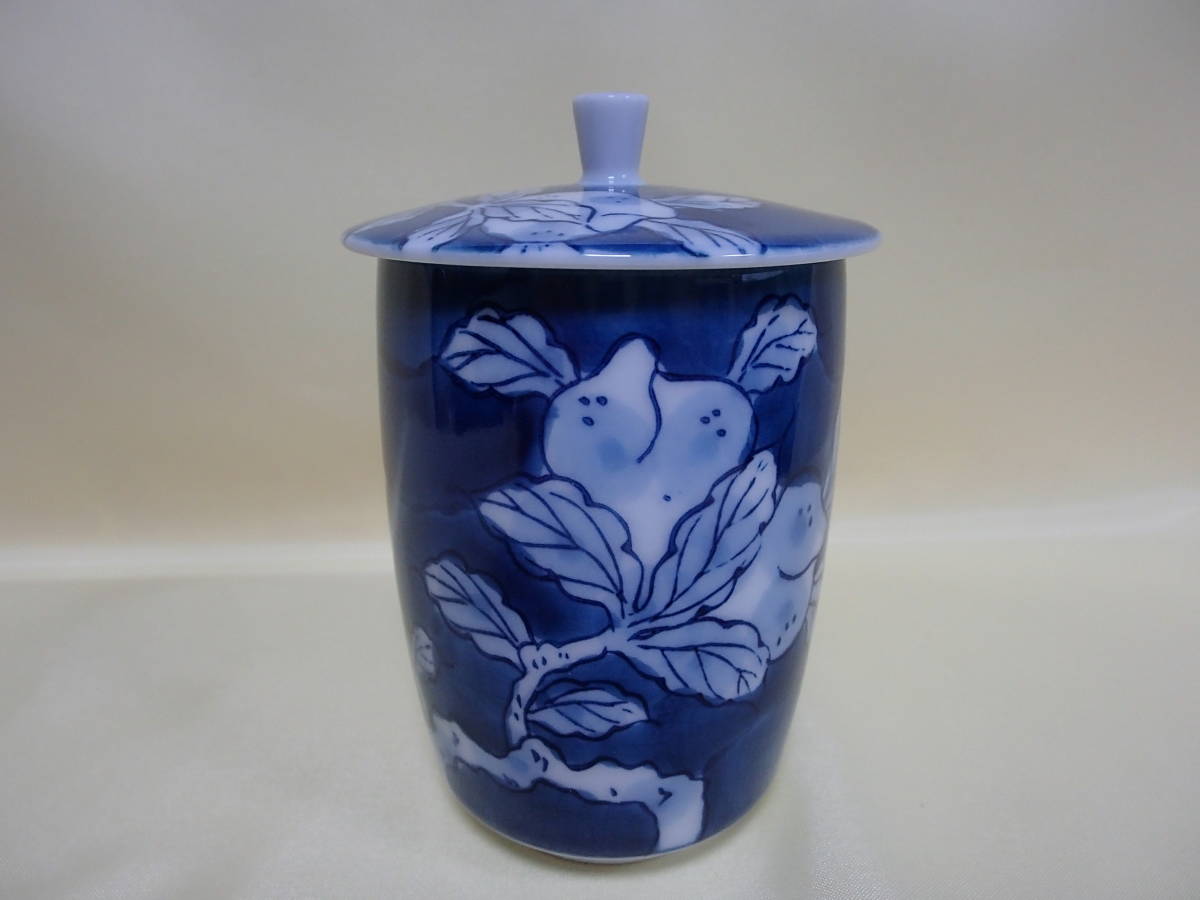【蓋付き湯のみ】【崋山作】【全面に絵付け】未使用・箱なし・美品