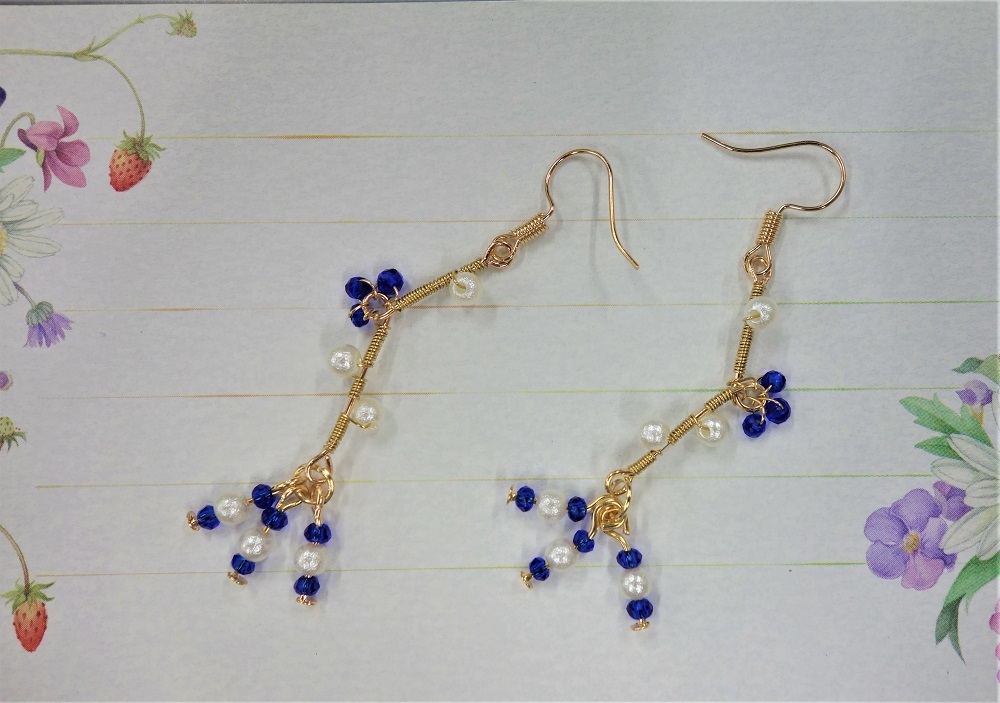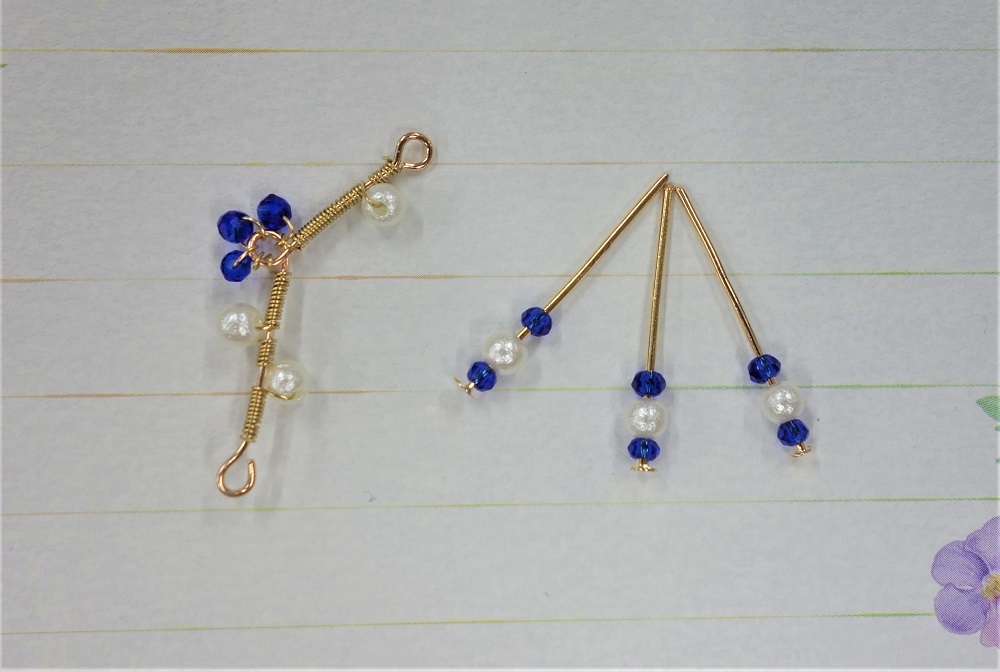 【9ピンとビーズで作った小花イメージピアス】送料無料/ハンドメイドアクセサリー