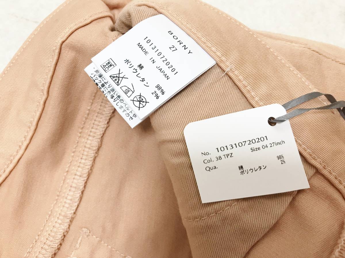 | BORNY MARK STYLER㈱ 101310720201 サイズ表記:04 27inch お色め:38TPZ ややオレンジベージュ 系 綿98%・ポリウレタン2% ●平置き採寸●(参考) ウエスト/約36㎝ 股上/約21cm 股下/約71cm 股下10㎝渡り/約20㎝ 裾幅/約14cm 未使用品ですが、自宅保管にご理解頂ける方のご入札ご検討願います。 ◆細かい点(ご利用に問題のない程度の小さな傷・匂い・汚れ・シワ等) は素人検品の為記載漏れがあることをご理解願います◆ ◆洋服のようなものは保管・発送時のしわをご理解ください。 ◎照明・パソコンの色彩環境等の違いから 掲載の画像と実物の色味が異なる場合がございます。 ★発送について★ ◆全国送料無料・・・日本郵便◆ 追跡のある方法でお送り致します。 ★自動メッセージで発送連絡がされます。 別途こちらより発送の際のご案内はしておりません。 ◆土日祝・年末年始・GW・お盆期間はお休みしています 発送対応はしておりません。◆ ◆平日11時頃までのご入金確認で当日発送を心がけておりますが 対応出来ないときもありますので ご入金確認後の翌日~3日程度の発送でご理解ください◆ ★長期のお休みは自己紹介にて記載しております。 お手数ですがお急ぎの場合は一読お願いします。 | |||